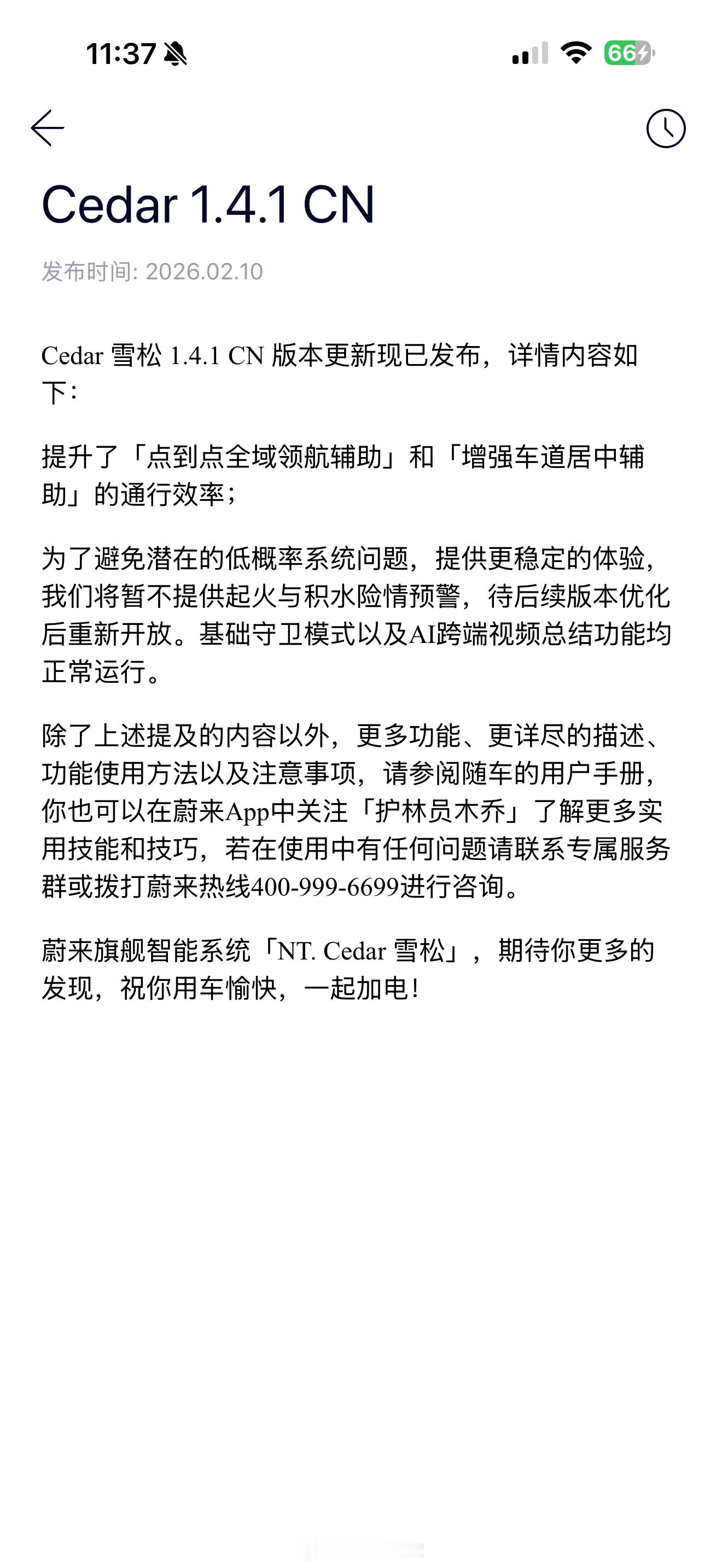 蔚来这波反应速度还挺快的,刚推完世界模型 2.0 的 Cedar 1.4.0,紧接着就推了 1.4.1。