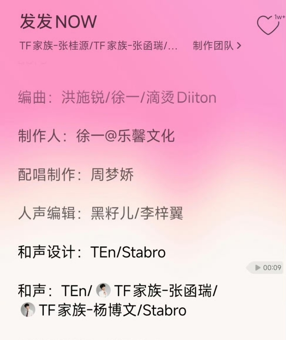 TF四代新歌和声是张函瑞杨博文TF四代《发发NOW》和声:张函瑞 杨博文
