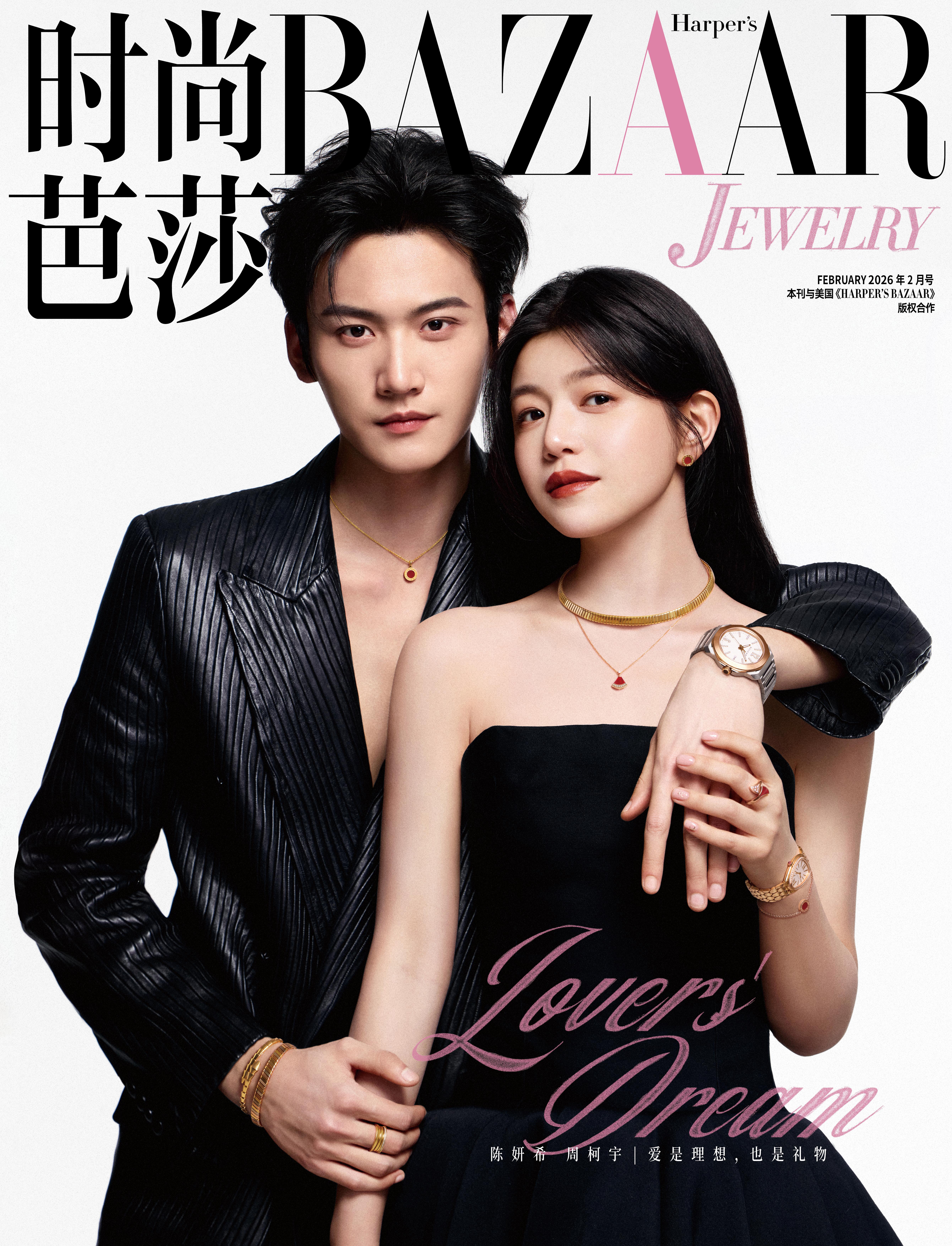 时尚芭莎 Harper’s Bazaar Jewelry February 2026 陈妍希 、周柯宇两人又再度合体登上了时尚芭莎珠宝特刊二月封面 ,佩戴宝格丽 BVLGARI 珠宝及腕表新作出镜 ,赏心悦目的美丽画面 🈶