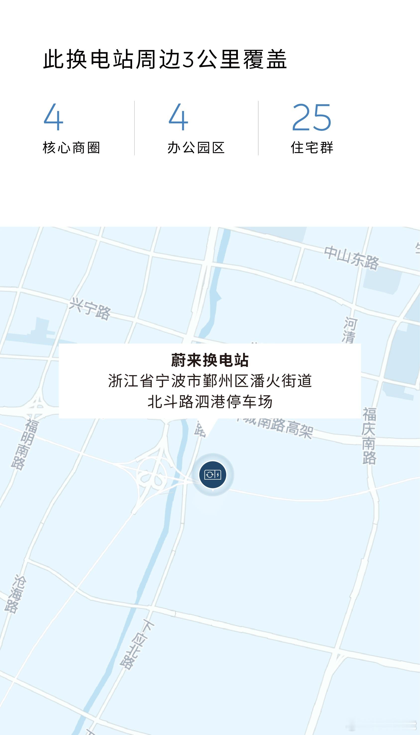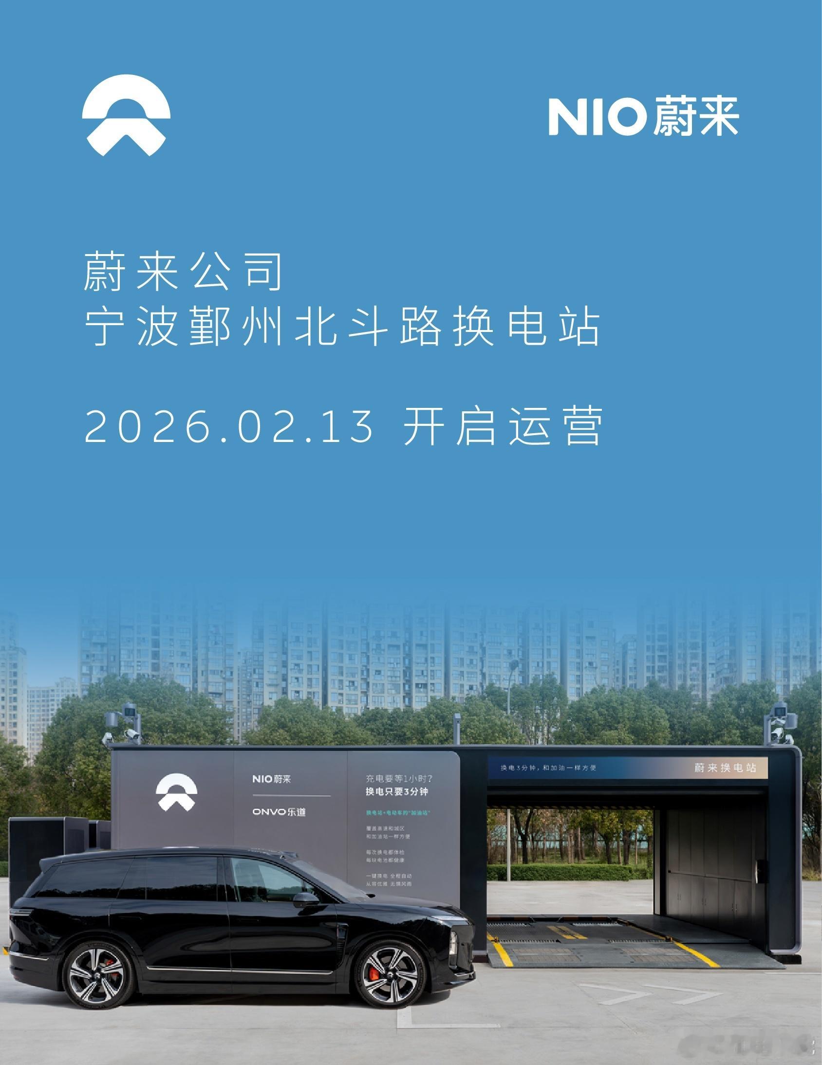 蔚来换电站 | 宁波鄞州北斗路 上线周边3公里覆盖4大核心商圈、4大办公园区、25大住宅群截至2月14日,蔚来已在浙江省布局480座换电站