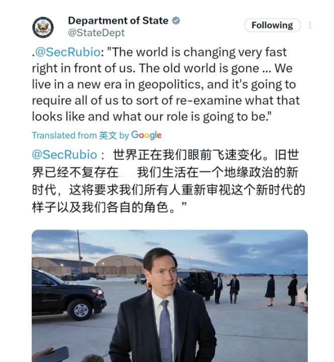 美国国务卿鲁比奥当着120个国家的面,亲口宣告由美国主导的世界秩序彻底结束了!2月13日,鲁比奥表示,世界正快速变化,地缘政治正迎来“新时代”。 世界正在我们眼前飞速变化,旧世界已经一去不返,我们生活在一个地缘政治新时代,这将要求我们所有人重新审视它的格局以及我们各自的角色。 这不是美国政客的场面话,而是美国官方正式承认,冷战之后延续多年的单极世界秩序已经宣告破产,美国自己也认定,继续维持这套由它说了算的国际规则,已经不再符合自身的核心利益。 美国之所以做出这样的判断,核心原因是全球格局已经发生了无法逆转的深刻变化,美国的霸权优势不断弱化,已经没有能力再独自掌控全球事务,只能被迫接受多极化发展的现实。 这些年世界上越来越多的国家实现了自主发展,在经济、科技、外交等领域拥有了更多话语权,不再愿意完全跟随美国的指挥棒行动,美国想要靠军事威慑、经济制裁等老办法操控国际局势,难度越来越大,付出的成本也越来越高。 美国的决策层很清楚,硬撑着维持单极秩序只是自欺欺人,与其消耗国力死撑面子,不如主动承认现状,以此为基础调整全球策略,把精力放在维护自身剩余优势上,这也是美国经过现实权衡之后做出的选择。 美国的这一转变,首先会直接影响到它的一众盟友,这些国家再也不能像过去那样轻松搭美国的便车。 以往欧洲、亚太等地区的美国盟友,靠着美国提供的安全庇护和市场便利,不用承担太多成本就能获得稳定的发展环境,在国际事务中也能借助美国的影响力获取利益。 现在美国明确旧秩序失效,就意味着盟友必须无条件服从美国的利益要求,要么加大投入配合美国的战略部署,要么在经贸、外交等领域做出妥协让步,想要两头讨好、自主发展的空间被彻底压缩,盟友们只能在依附美国和坚守自身利益之间做出艰难选择。 美国从主导全球秩序,转变为坚决不允许其他国家成为新的主导者,这会让全球大国之间的竞争变得愈发激烈。 美国不会再把维护全球共同利益放在首位,而是会动用一切手段遏制新兴力量的发展,经贸限制、科技封锁、地缘博弈等方式会频繁出现,全球的稳定发展环境会受到直接冲击。 各国之间的合作意愿会不断降低,分歧和对抗的情况会越来越多,地区冲突、经济波动等问题也会更频繁地出现,普通民众也能直观感受到国际局势的动荡变化。 美国的表态也会让联合国等国际组织的作用不断弱化,全球治理的难度持续上升。 在单极秩序时期,美国即便推行霸权,还会偶尔借助联合国的框架包装自身行为,维持基本的国际规则。 如今旧秩序破产,美国连表面的规则约束都不愿遵守,联合国作出的决议、各国达成的全球治理共识,很容易被美国无视甚至破坏。 气候治理、粮食安全、地区冲突调解等需要全球协作解决的问题,失去了统一的协调核心,各国各自为政,很难形成有效的解决方案,很多国际难题会长期悬而未决,地区动荡的风险也会不断增加。 鲁比奥口中的地缘政治新时代,本质上是全球多极化趋势不断深化的结果,世界上不再有唯一的霸主,多个力量中心相互制衡、相互竞争成为常态。 美国虽然承认无法再主导全球,但并没有放弃霸权思维,反而会带头搅动国际局势,通过拉帮结派、制造对立来维护自身的优势地位,决心带头走进这个充满变数的新时代。 全球格局进入了重新调整的关键阶段,各国都需要重新定位自身的发展方向,只有依靠自身实力坚守国家利益,坚持多边合作的发展理念,才能在新格局中站稳脚跟。 从现实角度来看,美国承认单极秩序结束,是全球发展的必然结果,也让世界各国更加清楚地认识到,霸权主义行不通,单边主义没有未来。 和平与发展依然是时代的主题,只有各国相互尊重、平等协商,坚持合作共赢的理念,才能应对全球面临的共同挑战,避免国际社会陷入持续的对抗与混乱,这也是普通民众最希望看到的发展方向。