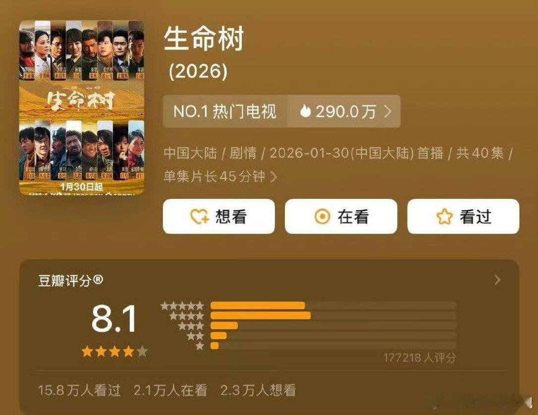 杨紫《生命树》豆瓣开分8.1,这部剧算是今年的精品好剧了,全员演技在线,剧情讲的也很好,镜头质感没得说,你觉得8.1分是高了还是低了?