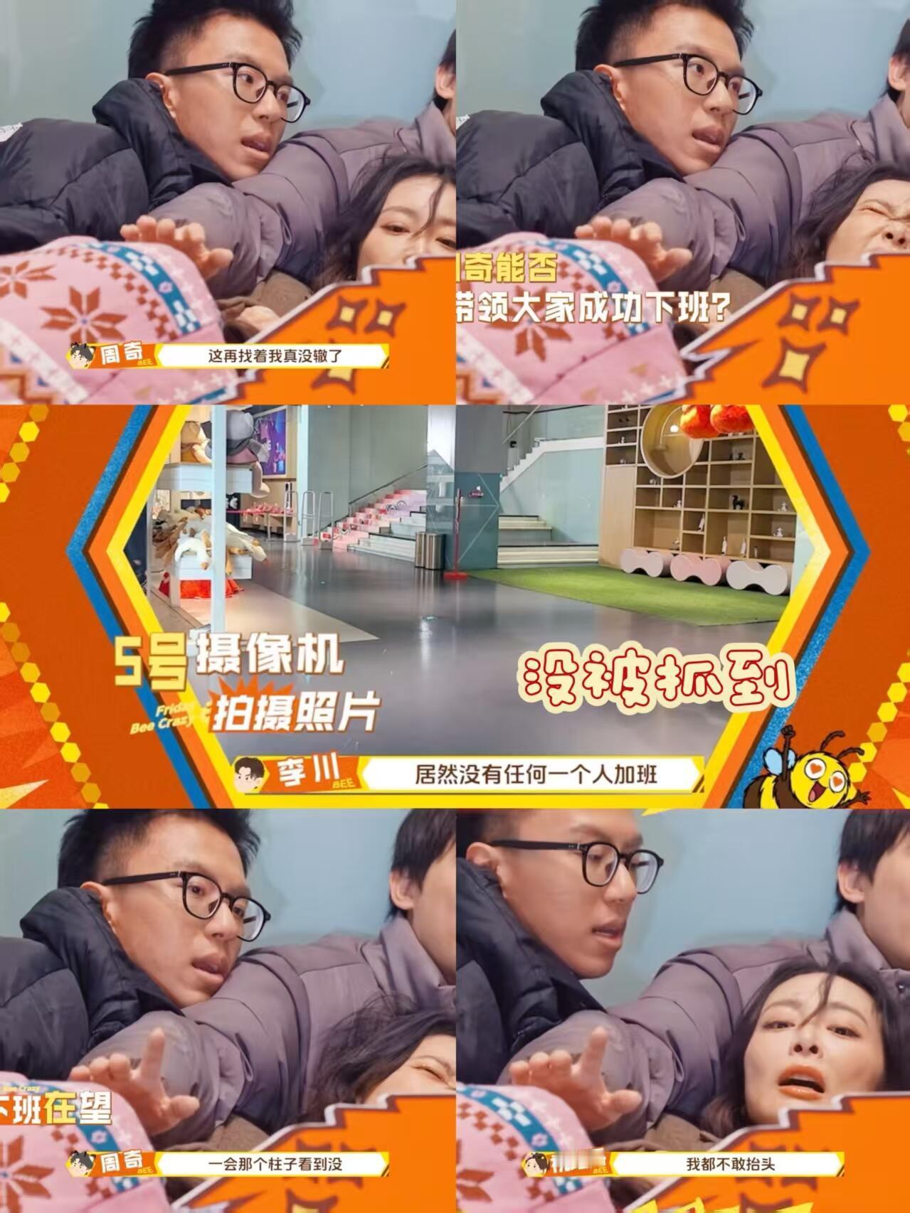 周奇下班一拖四战绩可查 周奇带着杨迪、付航、高叶、祝绪丹一路精准避开所有监控点位,全程零失误带队下班。队友们只管跟着走,完全不担心迷路或被抓——他把下班路硬生生走成了特工大片。这种稳得离谱的安全感,谁不想拥有?周五晚高疯