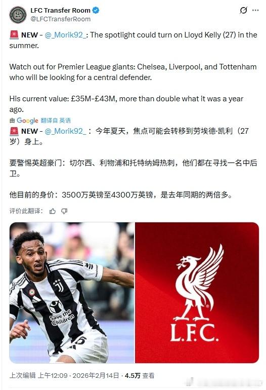 疑似两个中卫引援的新目标利物浦 利物浦买人了吗
