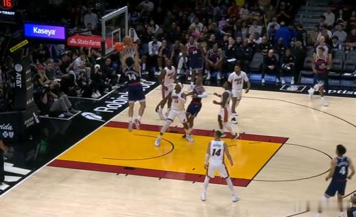 保罗生涯最后一颗运动战进球:P13弧顶持球和小克发动Slip配合换走米切尔、要到哈克斯换防,P14、15随后直接使用一记上步急停持球三分强投“突施冷箭”,顶着哈克斯干扰稳稳命中。