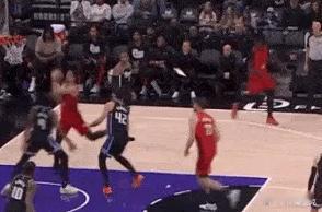 P18挡拆发起抢出身位优势后,行进间使用“人质运球”(hostage dribble)将伊森卡在身后,见亚当斯坚决沉退篮下,阿福选择上步急停中投,打成2+1。