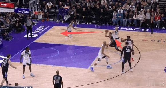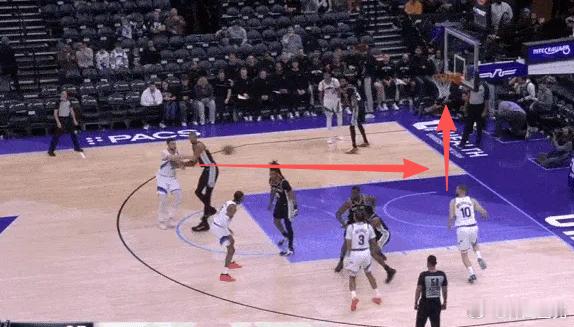 P7-8弩机高位拿球策应,贝利佯装上提衔接手递手,随即执行“Backdoor Cut”摆脱福克斯,弩机心领神会立即送出击地球领人助贝利双手暴扣打成2+1。