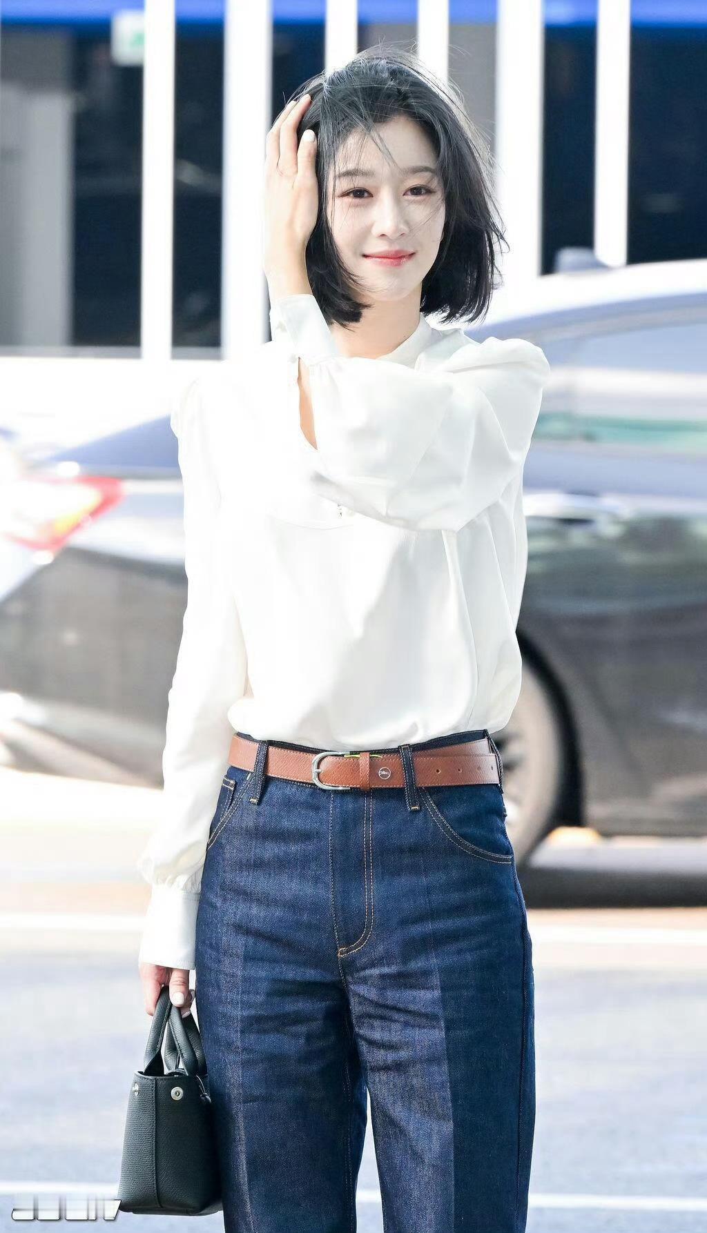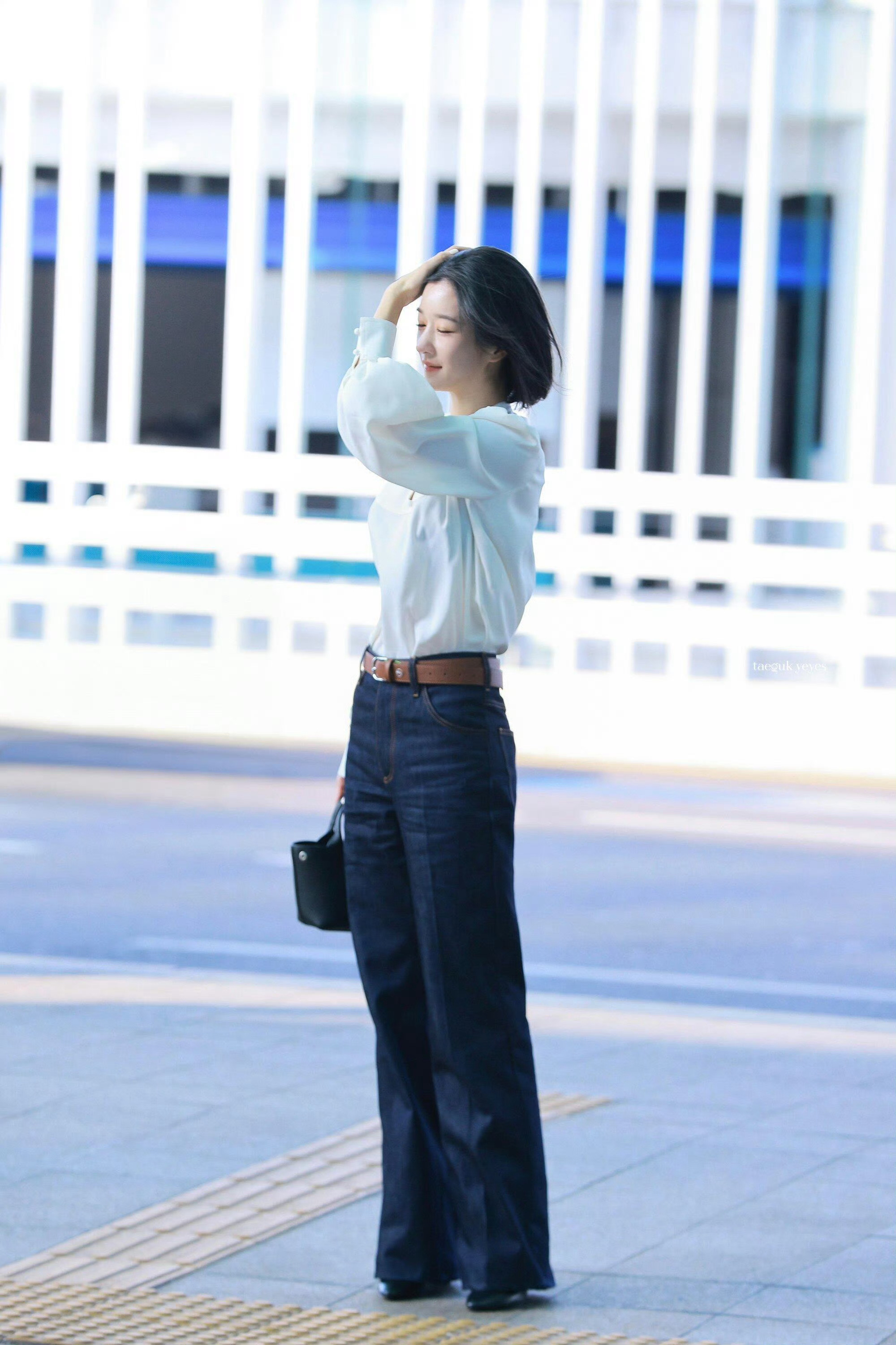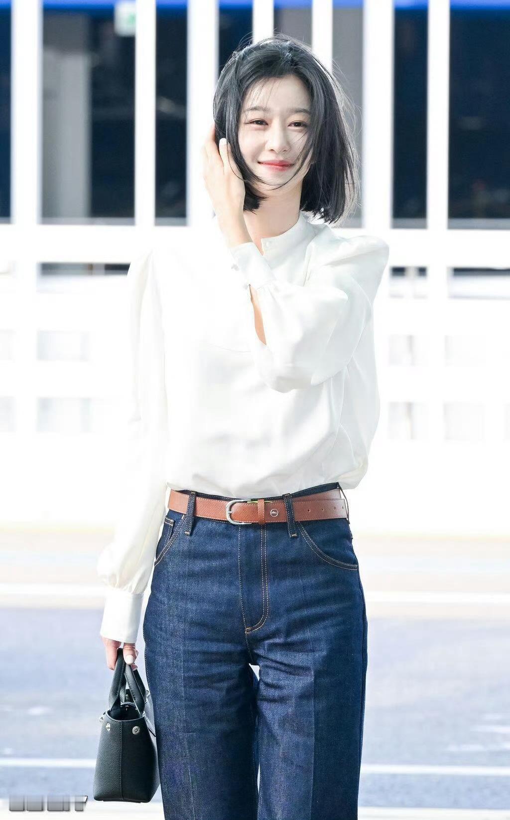 刘亦菲这条裤子也太养生了吧,连肚脐眼都好好护住,舒适又接地气~