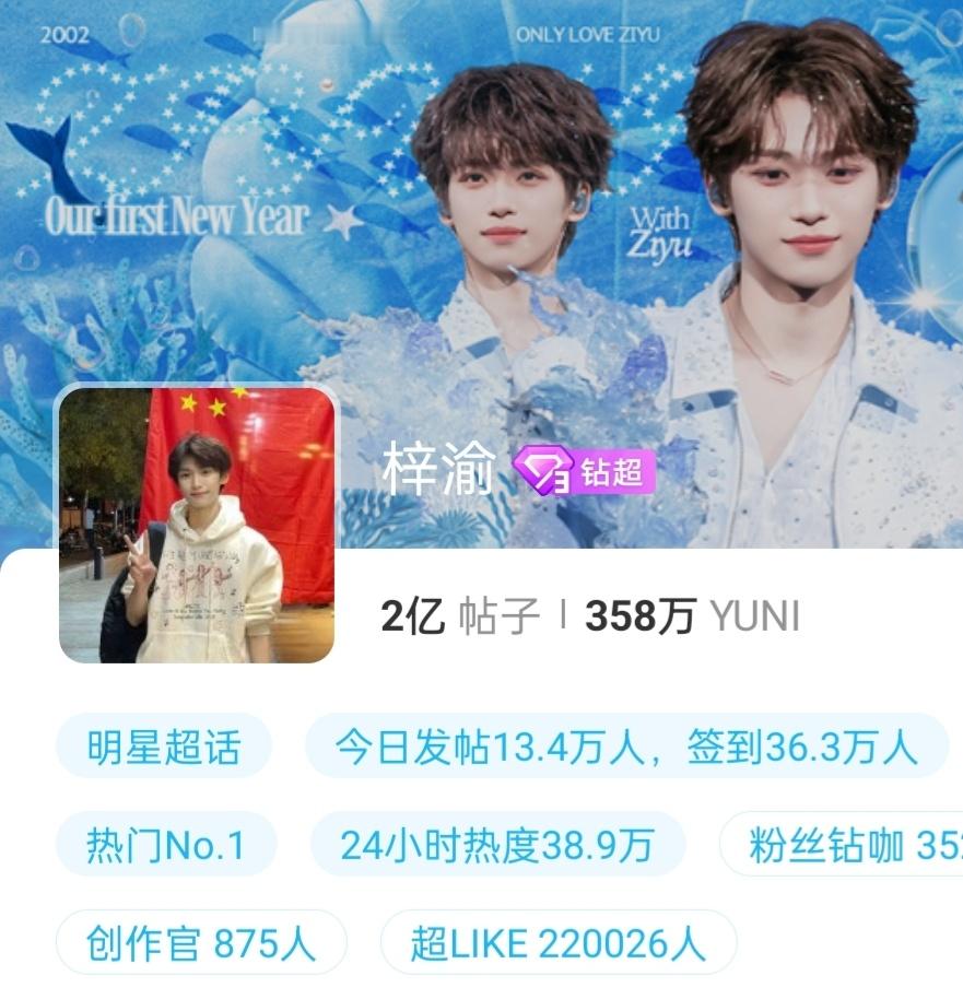 梓渝超话发帖量历史最快破2亿恭喜梓渝超话发帖量突破2亿🎉破亿后【76天】再翻倍历史最快!情人节迎来又一个新成就!