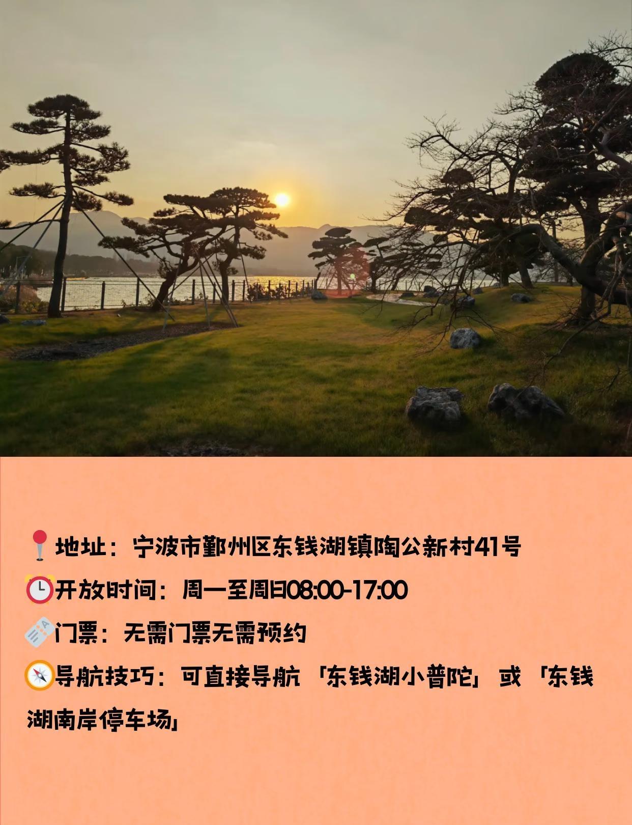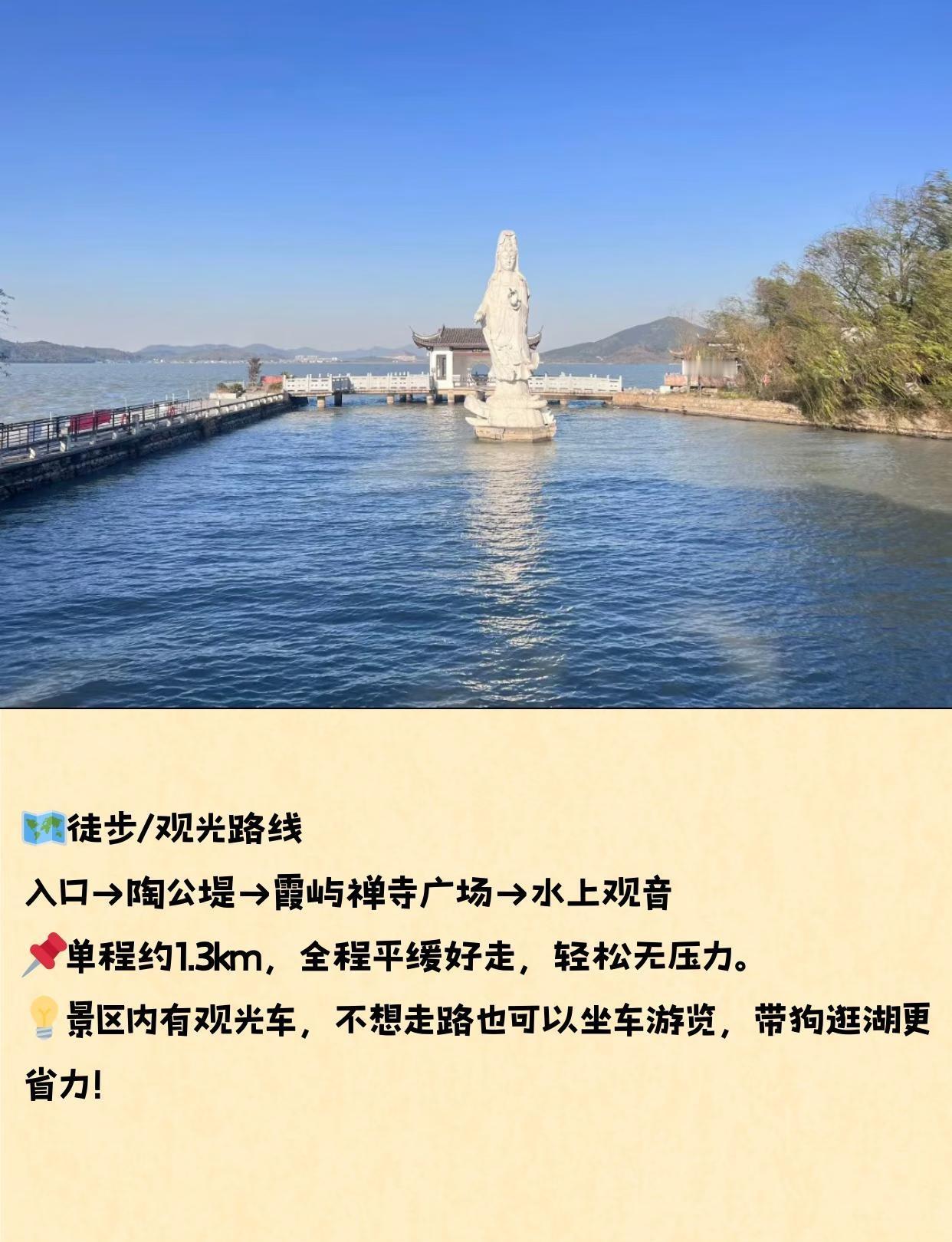 带狗逛东钱湖!这条轻松路线闭眼冲 宁波超适合带毛孩子散步的地方来啦! 东钱湖小普陀湖景绝美、路线轻松,宠物友好度拉满,铲屎官们快收藏这份攻略~ 📍地址:宁波市鄞州区东钱湖镇陶公新村41号 ⏰开放时间:周一至周日08:00-17:00 🎫门票:无需门票无需预约 🅿️停车场 景区门口停车场车位紧张,节假日建议尽早到达,也可选择周边停车场作为备选。 💡 小贴士:高峰时段陶公岛可能限流,建议早到或乘船(游客服务中心往返)避开拥堵 🧭导航技巧:可直接导航「东钱湖小普陀」或「东钱湖南岸停车场」 🐾宠物友好政策 • 宠物友好场所✅,允许携宠进入景区 • 需全程使用2米以内牵引绳🦮 • 室内场所禁止携宠进入,文明携宠出行 🗺️徒步/观光路线 入口→陶公堤→霞屿禅寺广场→水上观音,单程约1.3km,全程平缓好走,轻松无压力。 💡景区内有观光车,不想走路也可以坐车游览,带狗逛湖更省力! ✨推荐理由 这里湖光山色环绕,绿树成荫、风景宜人,打卡点集中、出片率高,交通便利、补给齐全,还有便捷观光车,是非常适合带毛孩子出行的宠物友好景区。 ✅带狗必备清单 2米内牵引绳、足量捡屎袋、便携水壶、小零食、擦脚湿巾、保暖衣物 📌带狗小贴士 1. 禅寺、石窟等室内场所禁止宠物入内⚠️,仅可在户外区域游玩 2. 全程务必牵好狗狗,文明遛宠🦮,不影响其他游客 3. 自觉清理狗狗粪便,共同爱护景区环境 4. 景区湖边风大,注意给毛孩子做好保暖 这个周末,就带毛孩子来小普陀吹吹湖风,享受治愈时光吧~ 宁波带狗玩 宁波带狗去哪玩 宠物友好 游玩攻略 城市周边游 宠物活动 东钱湖