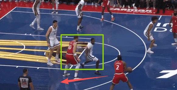 P8-10边线球回合,弱侧的伦纳德同时借助祖巴茨的“Pin Down”(下掩护)兜出接球,接哈登传球后祖巴茨再翻转掩护角度与伦纳德衔接边路挡拆配合,挡拆行进间伦纳德炸球的同时完成“垫步”,随即出手持球三分,打击伊迪的沉退。
