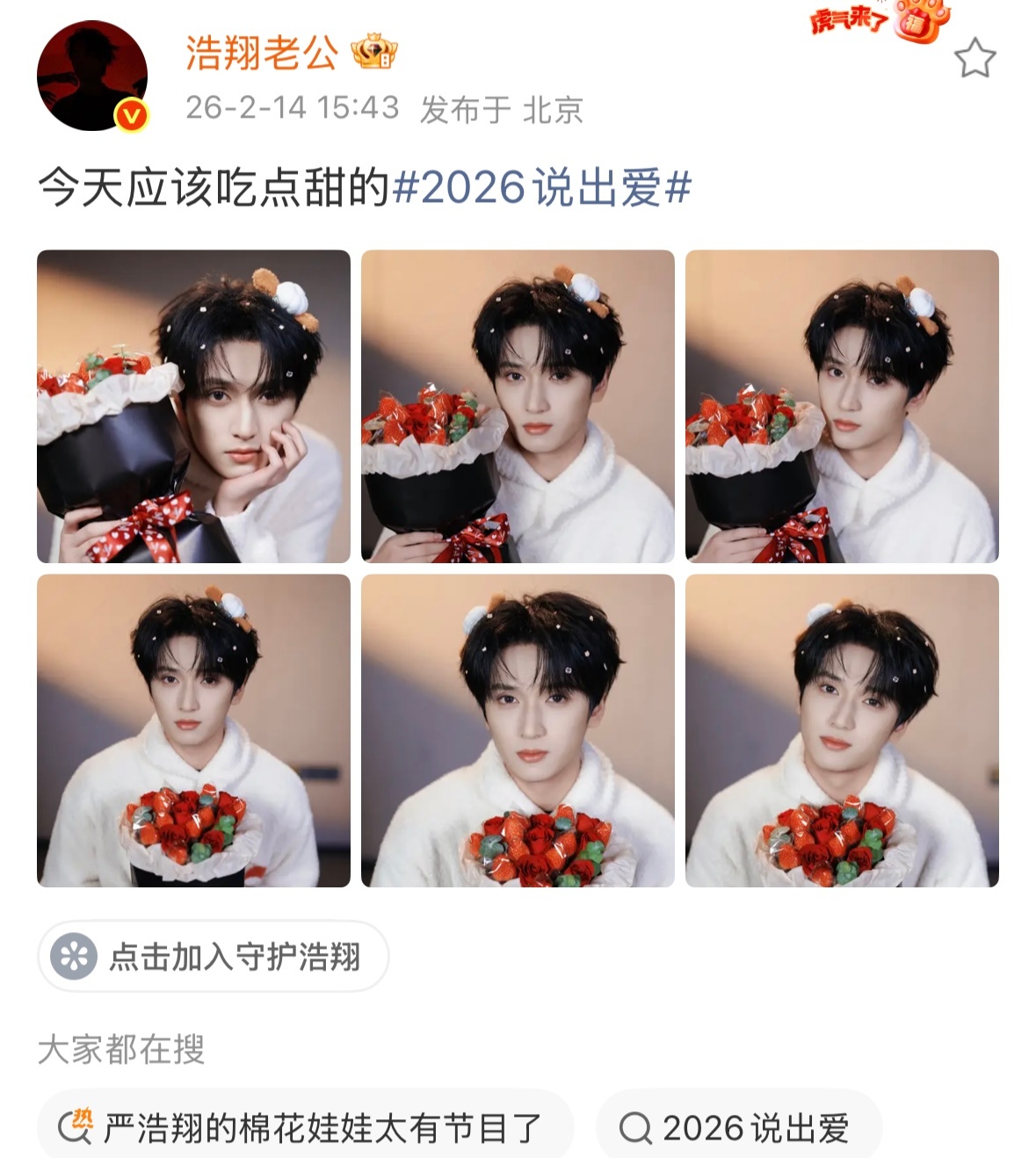 全社交平台更新,这个情人节没人比稀奇更幸福了,浩翔啊你真好爱我们