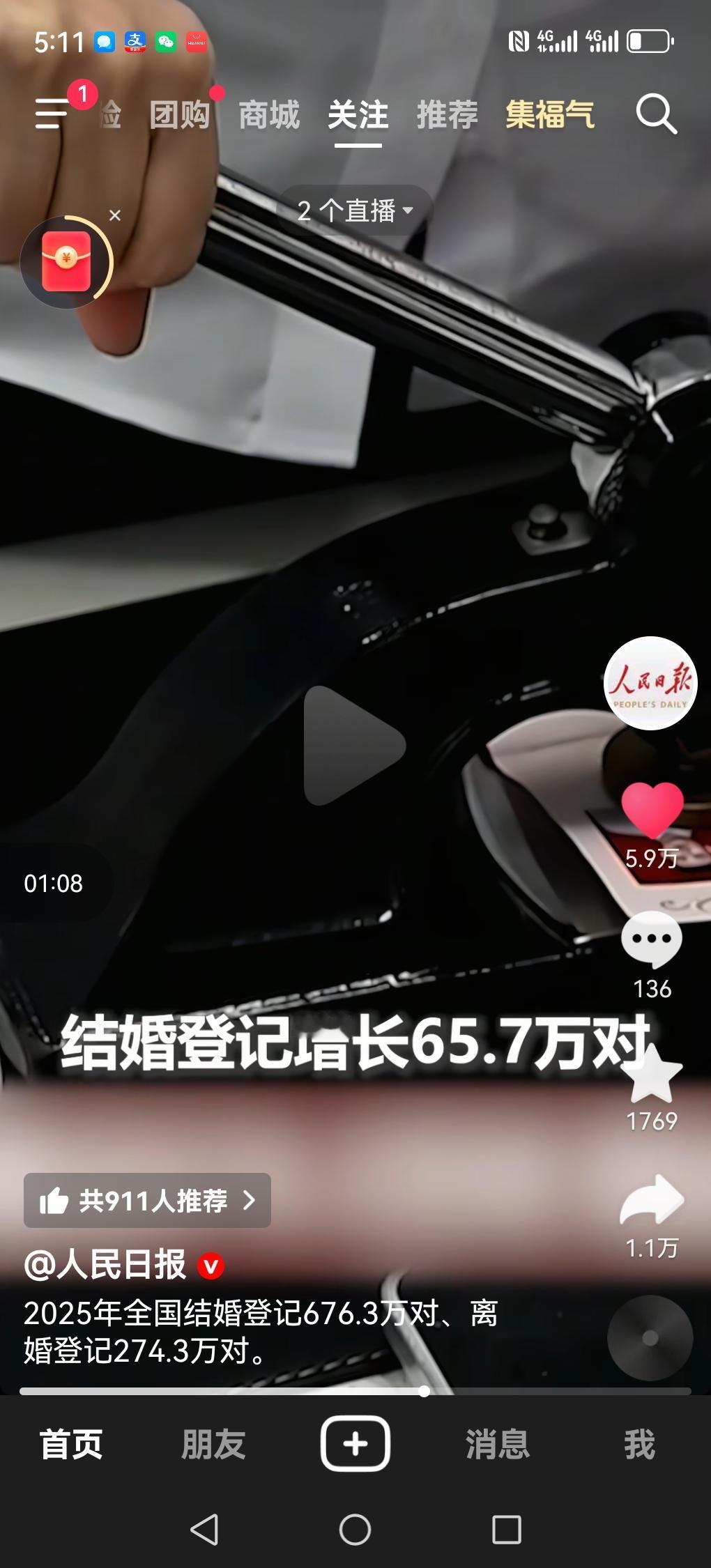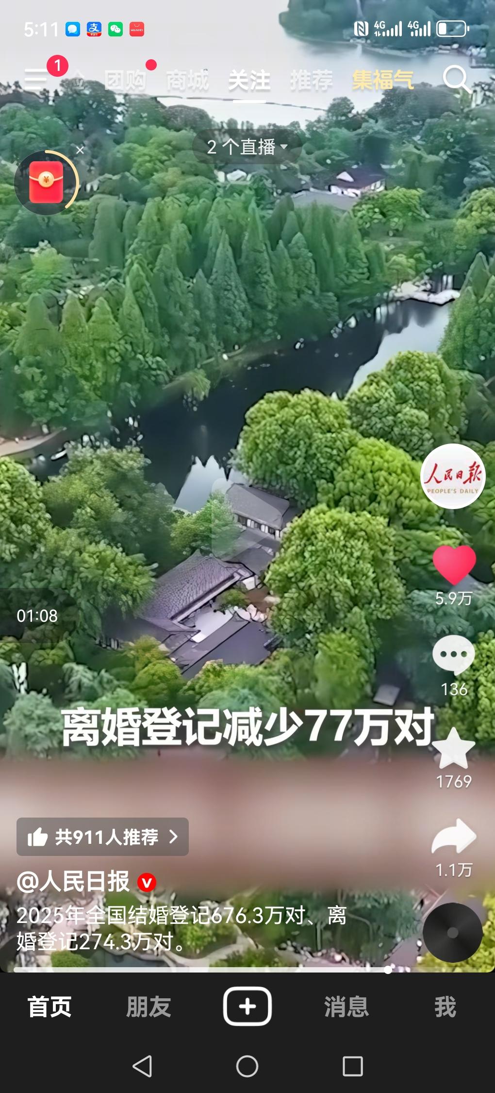 2025年全国婚姻登记数据(民政部2026-02-11发布) 结婚登记:676.3万对 同比+10.76%,较2024年增65.7万对 - 离婚登记:274.3万对 同比-21.9%,较2024年减77万对 - 离结比:40.5%(近十年最低) 有谁知道2025年这是发生了什么吗?为什么结婚登记和离婚登记数量和人们想象的不一样?(图片信息来源:人民日报)全国结婚率 全国结婚率回升 婚姻登记率 中国结婚数据 结婚登记数回升