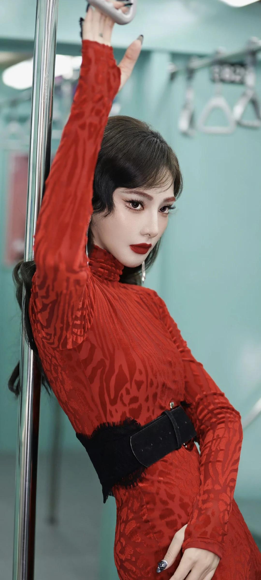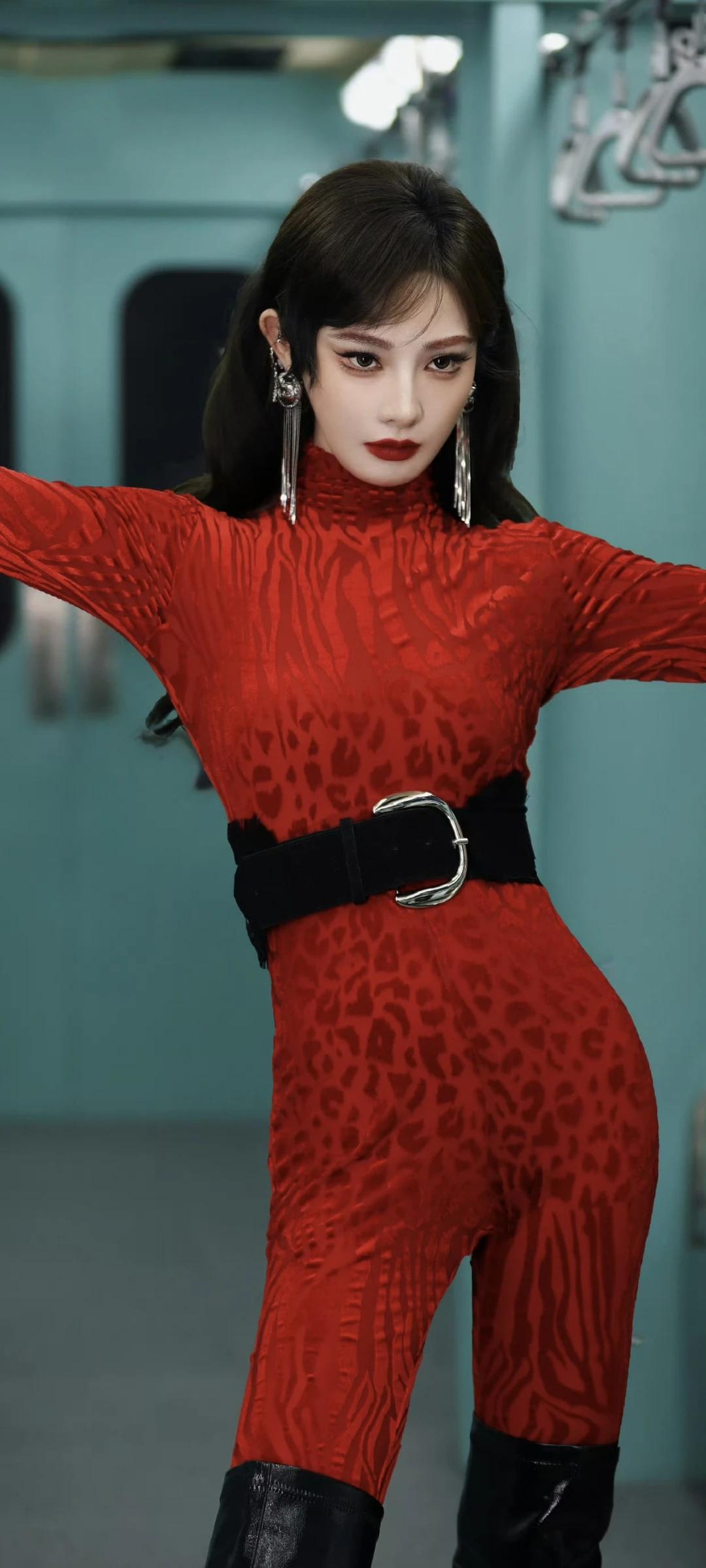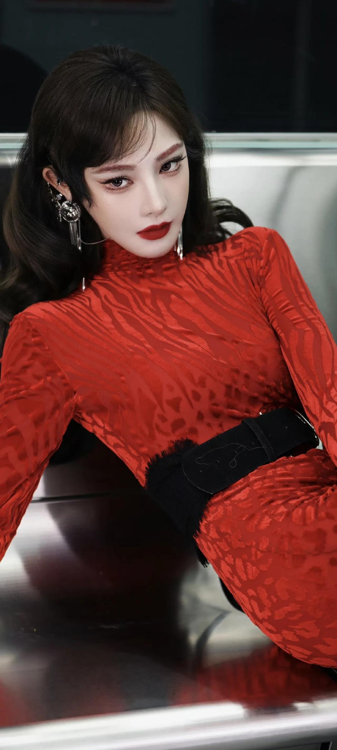 彭小冉壁纸~红纹贴身+大腰带,性感又野性的魅力暴击!