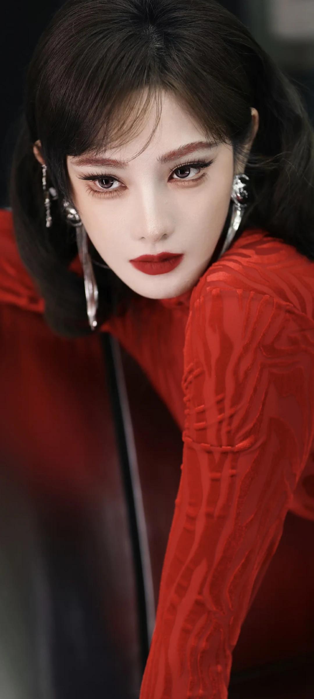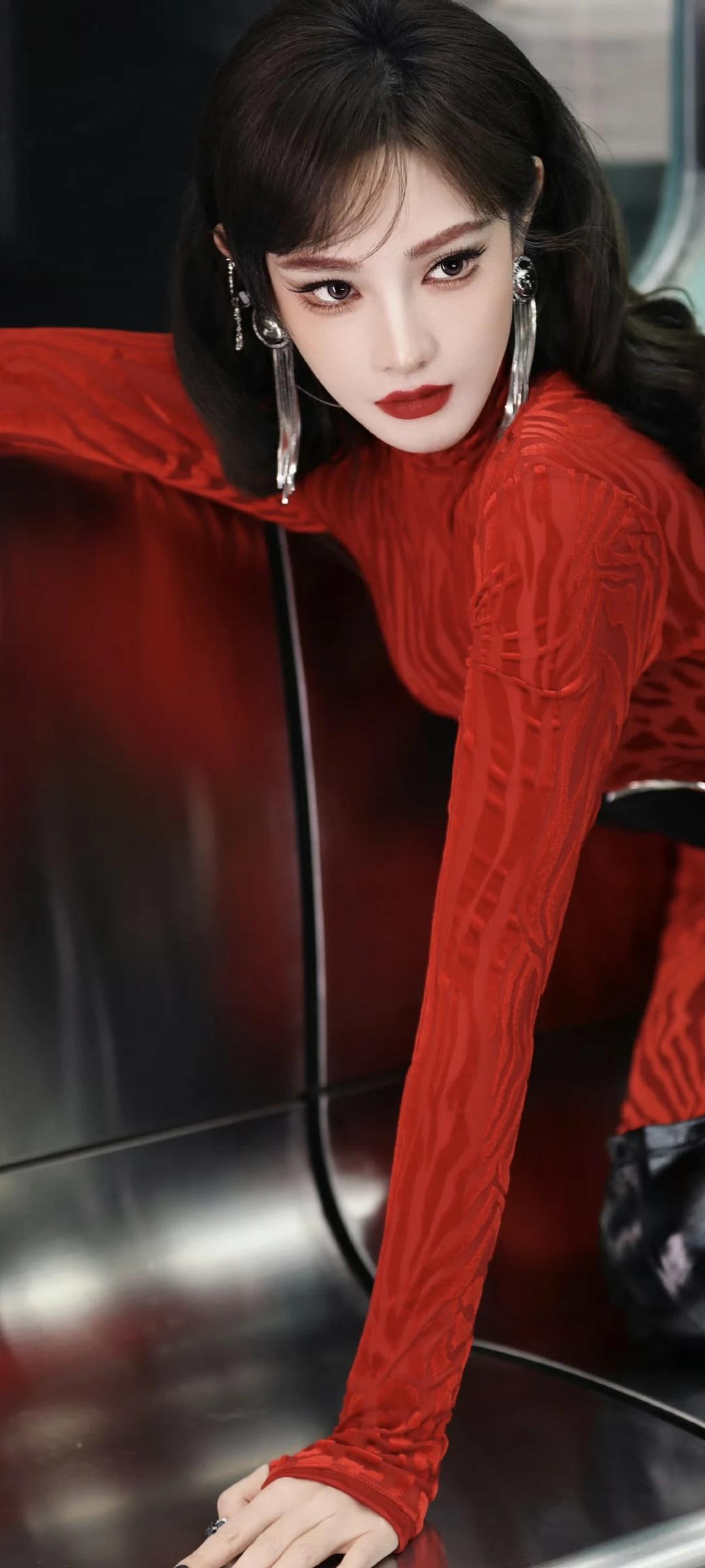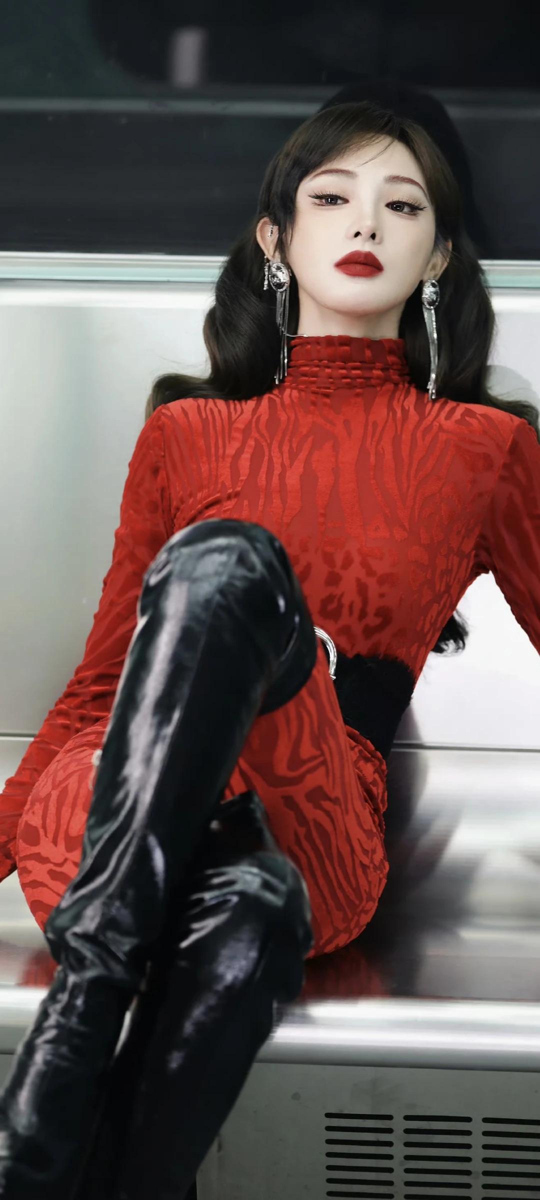 彭小冉壁纸~红纹贴身+大腰带,性感又野性的魅力暴击!