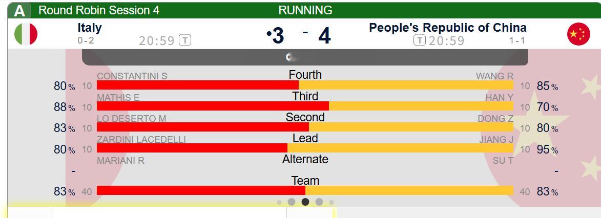 【中国-意大利】第六局芮姐完美旋磕控分,康姐后手传进保1,意大利4-4中国。即将
