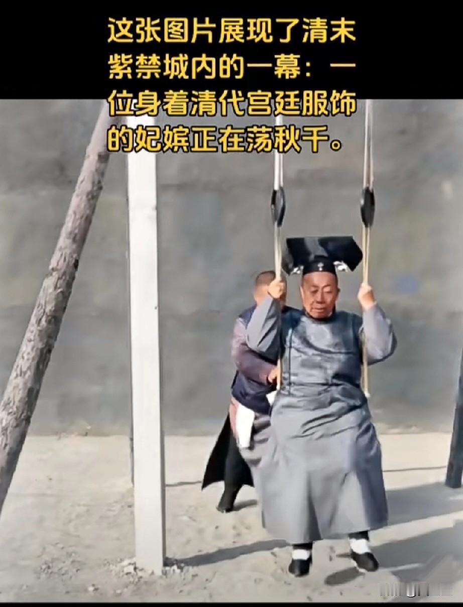 那时的皇上,真够倒霉的 这张图片展现了清末紫荆城内的一幕,一位身着清代宫廷服饰的嫔妃正在荡秋千! 那时好看的嫔妃都年纪轻轻被人害死了,能安全活到老的都是这样的。