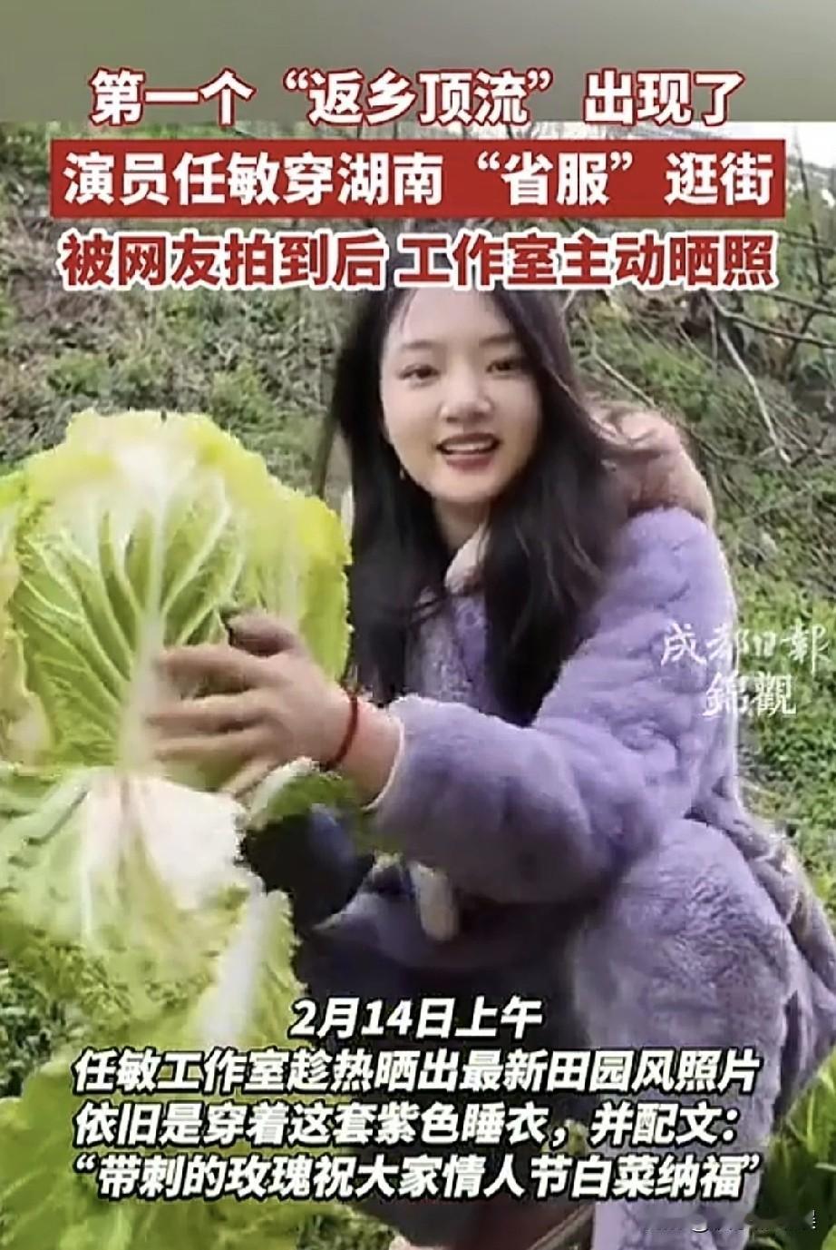 后续来了,湖南女星任敏回乡穿省服睡衣出门被拍,没想到却意外走红网络 随后工作室还特意晒出任敏录制的视频,祝福大家情人节快乐。 不得不说小姑娘真的很接地气,一点架子也没有啊。