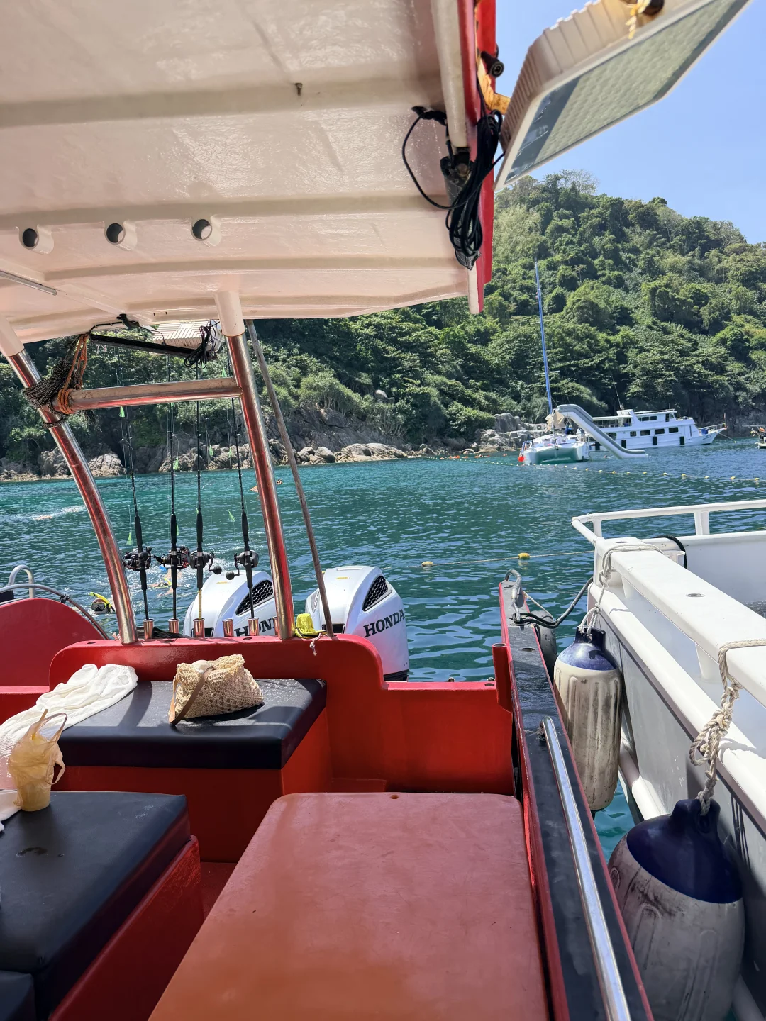 醒目的红色船身在蔚蓝海面之上格外亮眼,随手定格,便是充满海岛气息的画面。船体空间宽敞,行驶时平稳不晃,船上还配备了独立卫生间,还可以冲脚真的很贴心