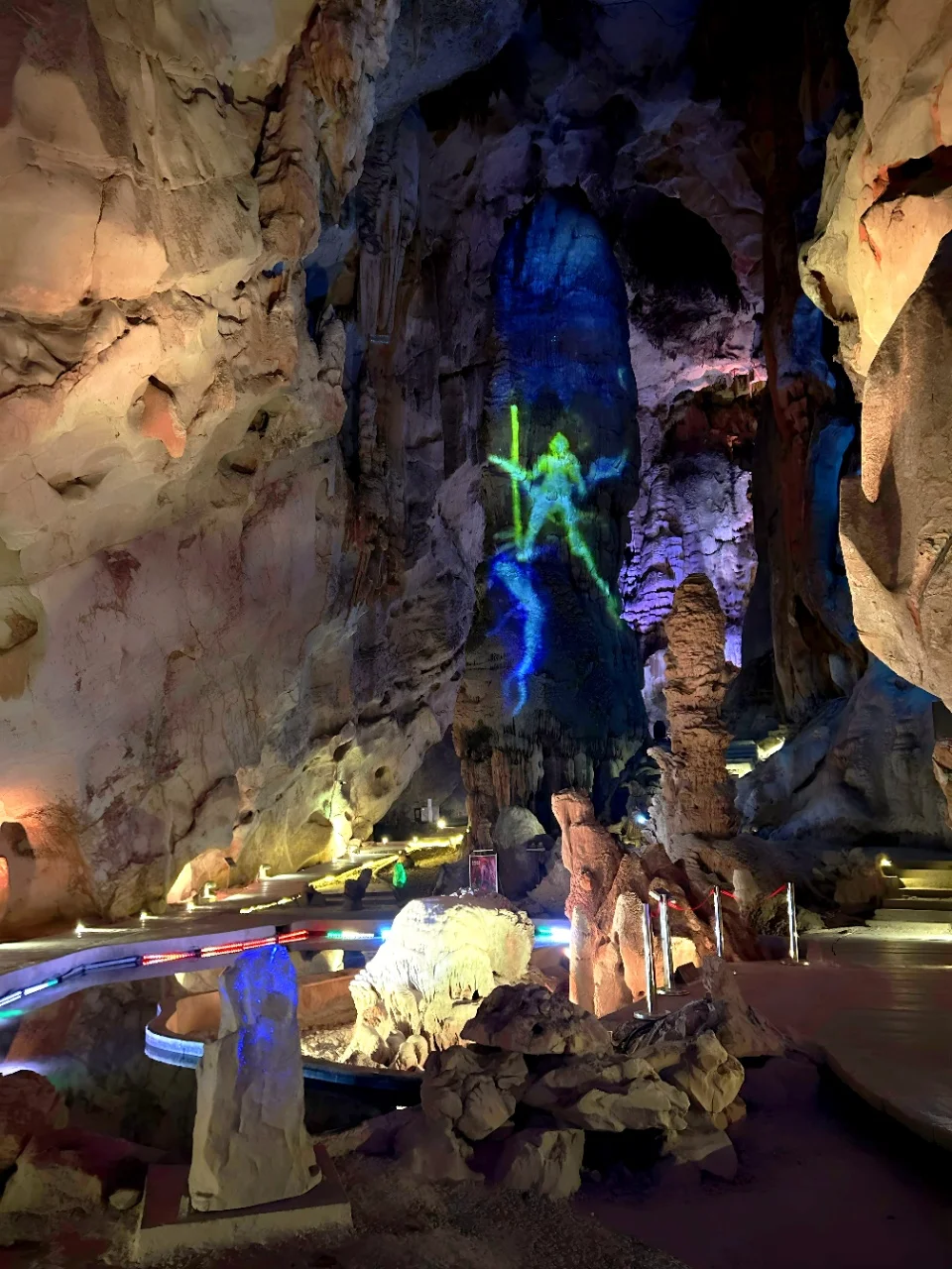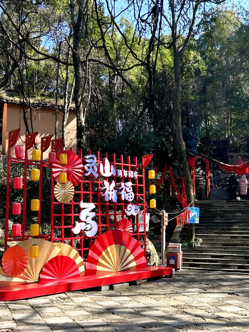 停车场网红墙打卡 → 财神办事处领福袋 → 上山看灵山幻境雪景 → 溶洞探险 → 乌龙洗心池水占 → 沧海阁敲钟祈福 → 下山换新年礼物。