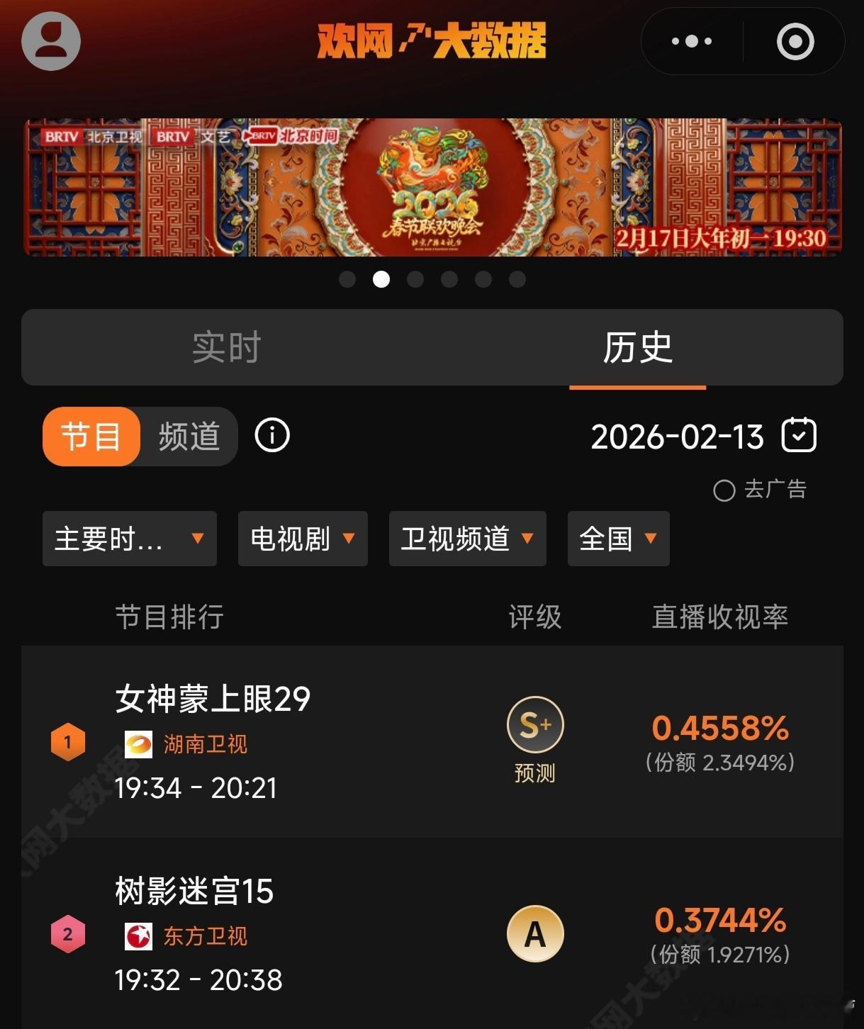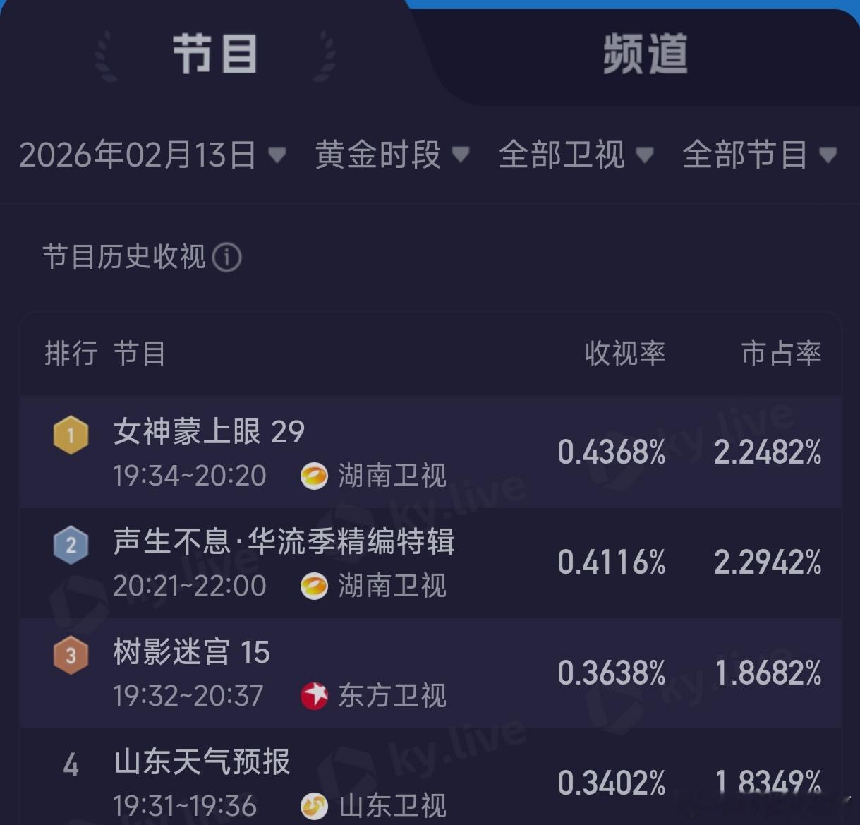 《女神蒙上眼》昨日单集卫视数据,全平台收视第一!今日湖南卫视收官,蕾子的小荧幕战