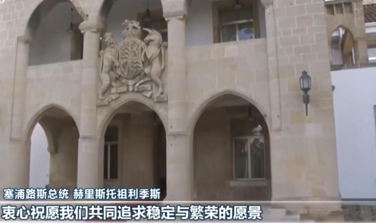塞浦路斯的总统府庄重典雅,石质拱门与绿植相映,尽显地中海风情。塞浦路斯总统赫里斯托祖利季斯表达了对中塞友谊的美好祝愿,期待两国在追求稳定与繁荣的道路上携手前行,让友谊与合作指引双方共创美好未来。