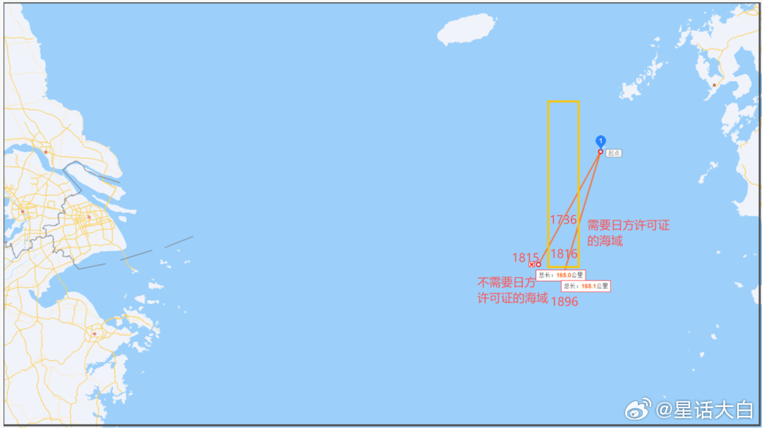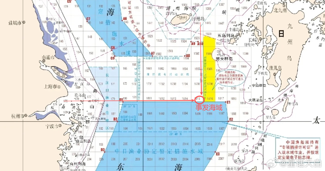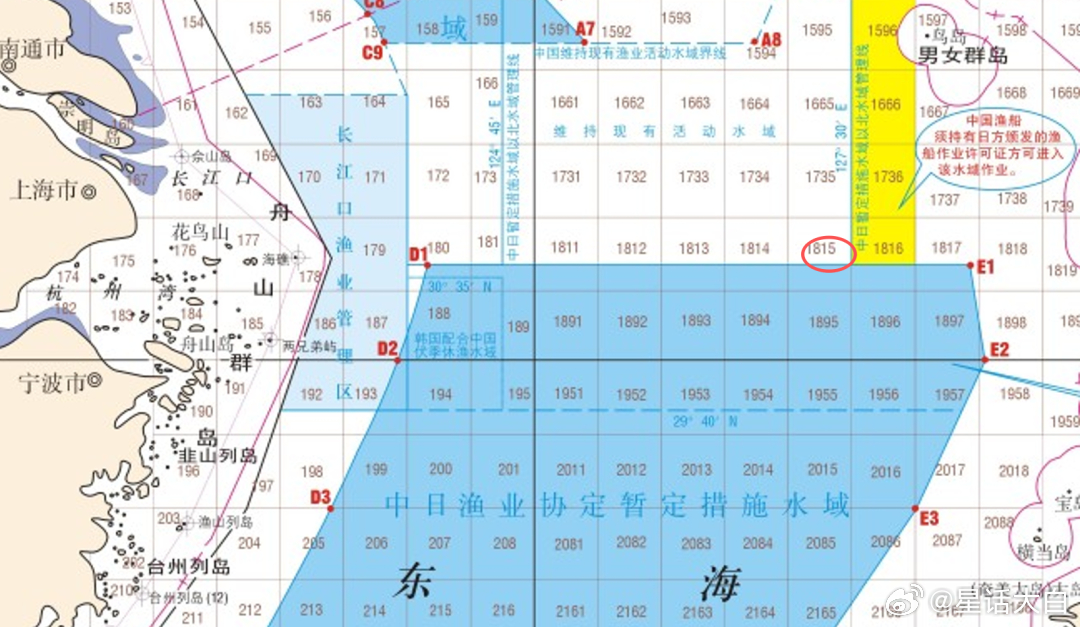 有人提到《中日、中韩渔业协定水域示意图》。我也查了下,虽然我方没有承认日本所谓“专属经济区”。但是,2009年5月,农业部发的一份《中日、中韩渔业协定水域示意图》,里面有规定一部分靠日本海域是需要日方颁发渔船作业许可证,渔船才能进入。根据这份协定,大部分所谓日方专属经济区,我方渔船是不需要日方许可证,只有图里黄色区域才需要。按照日方描述的位置,事发位置应该是在下图红色圈圈区域。这个区域是在我方允许作业区域、以及需要日方许可区域交界的一个区域。有人说事发位置是需要日方许可的1736位置,但我专门拿地图测算了下,1736是在女岛下方100公里偏左侧的位置。跟日方描述不符。如果位于需要日方许可的黄色区域这一列,距离165公里这个位置,是直接到1896区域,也就是不需要日方许可证的海域。按照日方位置描述,更有可能的区域,就是1815海域,这个海域都是不需要日方许可的,隔壁的1816海域里进行渔船作业才需要日方许可证。目前日本方面发布公告的页面,有公布一张发现渔船点,和扣押渔船点。把日方公布的图,跟《中日渔业协定水域示意图》对比一下。日方所谓“发现点”,是1816海域和1815海域的交界处。日方的说法意思是,渔船跑到1816海域被发现,然后一路逃到1815海域被扣押。也就是在女岛西南方向165公里被发现,在女岛西南方向170公里处被扣押。但这只是日本单方面说法,具体如何,应当以我方调查后公布的信息为准。日方这个说法,本身就存在一些问题。1816海域,我算了下,距离男女群岛顶多140-150公里左右,跟日方这个女岛西南方165公里处的表述是矛盾的。极限点的1816和1815的交界线,最远的地方应该是160公里左右。渔船应该清楚,1816区域是不能进的,主动进入1816的可能性很低。因为我方渔船出海,应该都有相关告知,哪些区域可以进,哪些区域不能进。而且,日本水产厅的公告,只强调在日本“专属经济区”内发现渔船,并没有提及1816海域。假如渔船进入到1816海域,那么日本方面没道理不说,除非日本方面想要给我们挖坑。当然,在大海上航行,有时候难免有意外。按照最极端情况考虑,渔船当时顶多就是在1815和1816的交界处附近。即使日方说法属实,被发现位置就在交界线附近,渔船更多就是不小心进入到1816海域,结果日方在没有警告和驱离的情况下,就直接一过线就采取扣押的方式,摆明就是来故意找事的。而且,还是出动了4艘执法船只,对渔船实施围追堵截,显然就是蹲在那里,只要看到有渔船出现在交界处海域出现,就马上冲上去扣押,典型是想故意搞事的。当然,因为目前公开报道的扣押位置都只是日方的模糊描述,并没有准确位置的通报,人没回来,我方自然不好明确回应。不然万一渔船最后查出进入了1816海域,那我方提前发难,就容易陷入被动。所以,要等人回来了,知道具体事发时候的准确位置,我方才能根据实际情况,去进行回应,具体还是以我方正式回应为准。1816海域是2009年中日协商规定,需要日方颁发的渔船作业许可证方可进入。所以渔船如果进入1816海域,被扣押了渔船,只要人放回来了,那我方也不好多说什么。但渔船如果没有进入1816海域,就是日方违规扣押了渔船,船长并无过错的话,那么我认为,这件事情就不会就这样结束。渔船是否进入1816海域,应当以我方公布信息为准。#日本当局再次扣押中国大陆渔船#