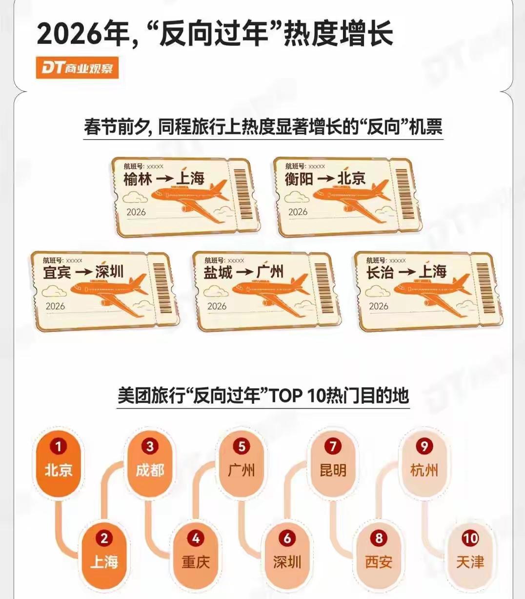 一大批年轻人,开始“反向过年”!这不是叛逆,而是最清醒的团圆选择。 不再抢票挤春运、不再疲于应付人情世故,大家纷纷把父母接到自己打拼的城市过年。 不用长途奔波,避开走亲访友的压力,在自己熟悉的节奏里陪伴家人,轻松又踏实。 反向过年,改的是路线,不变的是心意。父母在哪,年就在哪;家人相伴,哪里都是家。这是新时代更舒服、更有温度的过年方式,也让团圆回归了陪伴本身。 不用被传统绑架,怎么舒心怎么过,才是过年最好的样子。 今年你是回老家,还是反向接父母来身边过年?