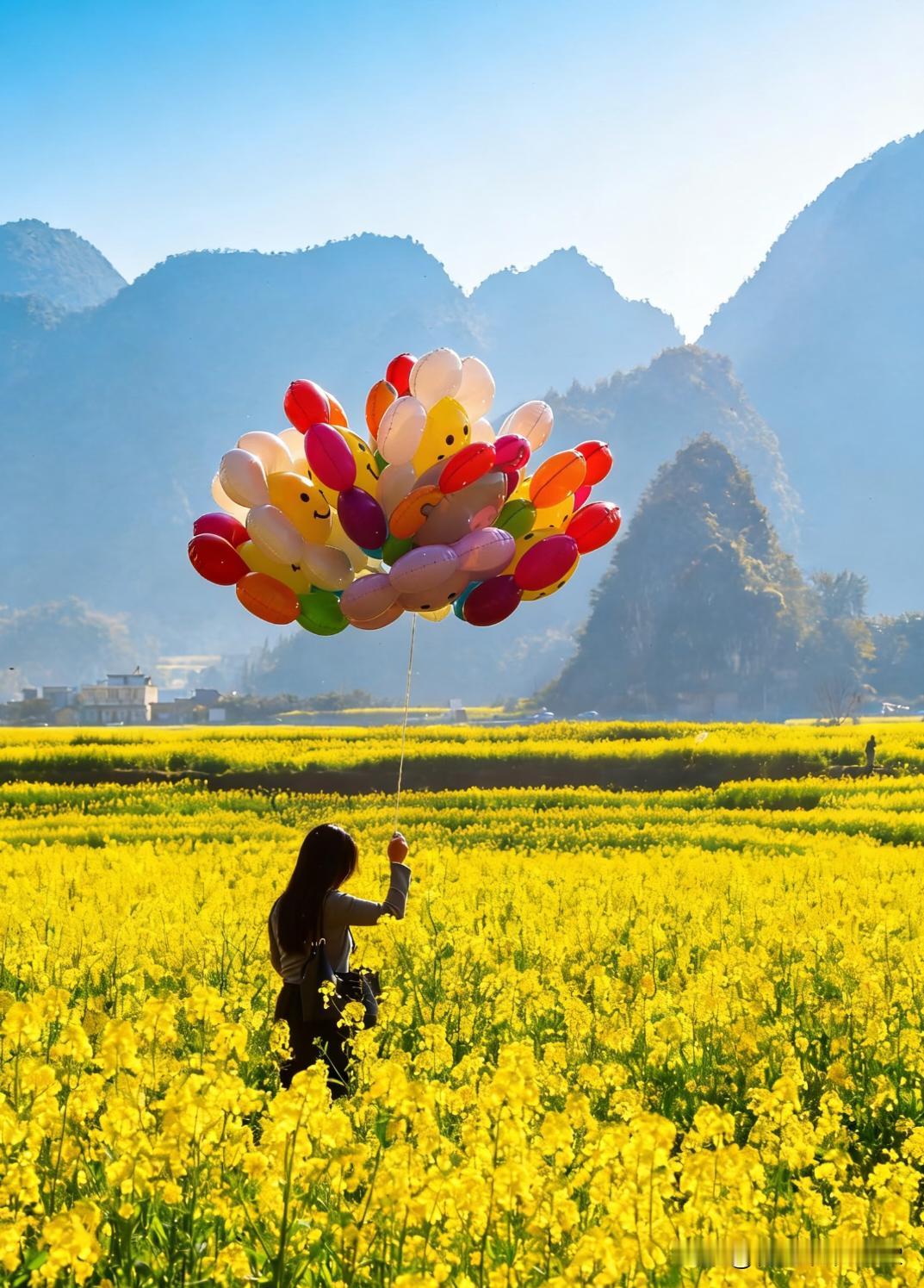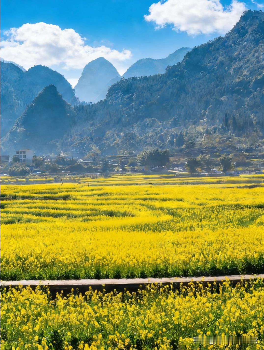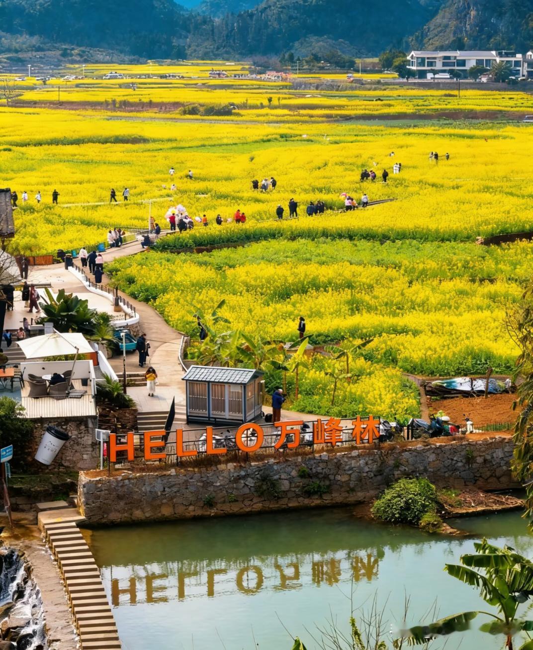 交换春天 宝藏小众旅游地🎈 当北方还在飘雪,贵州兴义市的万峰林已经悄悄解锁了全国最早的油菜花海🌼 万亩金黄铺在喀斯特峰林间,白墙灰瓦的布依村寨嵌在花海里,连空气都飘着清甜花香,这波早春顶流必须冲! 作为“抢跑春天”的存在,万峰林的的春天开始啦。 来万峰林怎么玩才够沉浸?这份“油菜花全体验攻略”请收好! 🌼【油菜花妆】氛围感拉满的春日限定 不用刻意带道具!摘几朵新鲜油菜花别在发间,或用花汁轻轻点涂在脸颊当腮红,自然又灵动~ 搭配白裙子或布依刺绣上衣,站在田埂上随便转圈、蹲拍,让金黄花海当背景,秒变花间精灵,出片率100%! ☕️【打卡万峰林村咖】躺赏花海的松弛感 逛累了就钻进花海边的宝藏村咖,解锁“花海+咖啡”的神仙组合: ✔️峰兮·河畔:在八卦田旁边,落地窗外就是金黄花海,点一杯招牌咖啡,配块甜品,看蜂蝶飞舞,惬意到不想走~ ✔️路边小馆:随便找的咖啡馆,坐在院子里,抬眼就是满眼的金黄,烟火气与自然美完美融合。