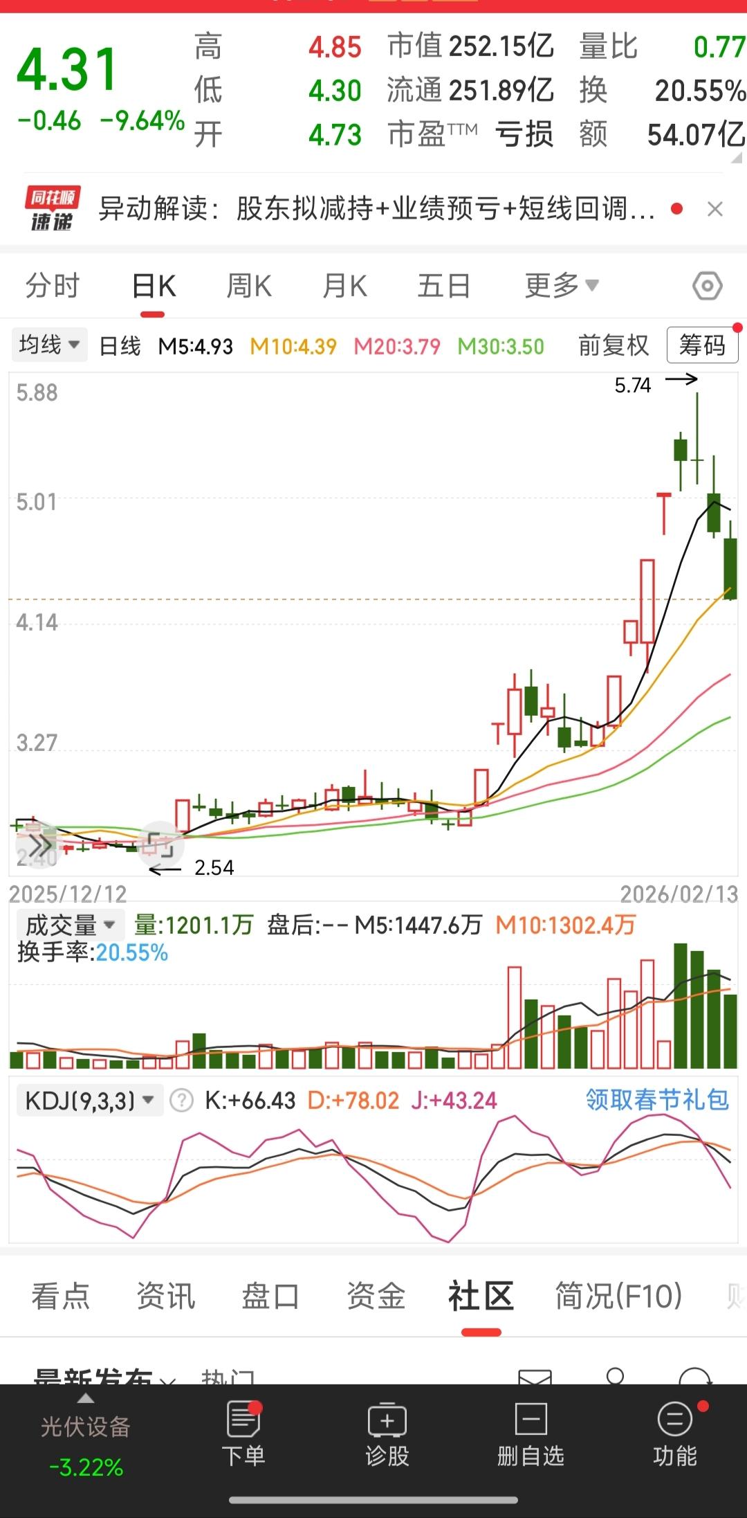一天不炒股心里痒痒的,即使过年不开盘也在找股票,看到最近的热门股突然头顶灵光一闪,过年后开市第1天就买它,大家觉得我的想法可不可行?我的理由主要有三: 第1是这支股票是最近一直霸占人气榜前10的热门股,热门股说明有人关注,即使掉下来也有资金去承接,我们都知道出妖股的大部分都是热门股。 第2个是太空光伏是最有前景的一个板块,光伏是新能源发展方向的一个重要分支,随着经济的发展对能源的依赖也会越来越强。石油、煤炭等不可再生资源总会有用到枯竭的一天,所以光伏概念股票都有很大的潜力,炒股票就是买预期的,感觉这样选股方向是对的。 第3个就是这支股票从最高点到现在已经下跌了将近30%,一般来说短短几天暴跌的股票也容易暴涨,只要进场的时机合适都会带来不错的效益。就像大家说的,已经跌了那么多,他又能跌到哪里去呢?这个时候的机遇已经大于风险,聪明的人都会尽快入手吧? 当然,以上都是自己一些不成熟的想法,不是荐股更不是让大家去买,只是写出来和大家一起商讨商讨,看看这样可不可行?