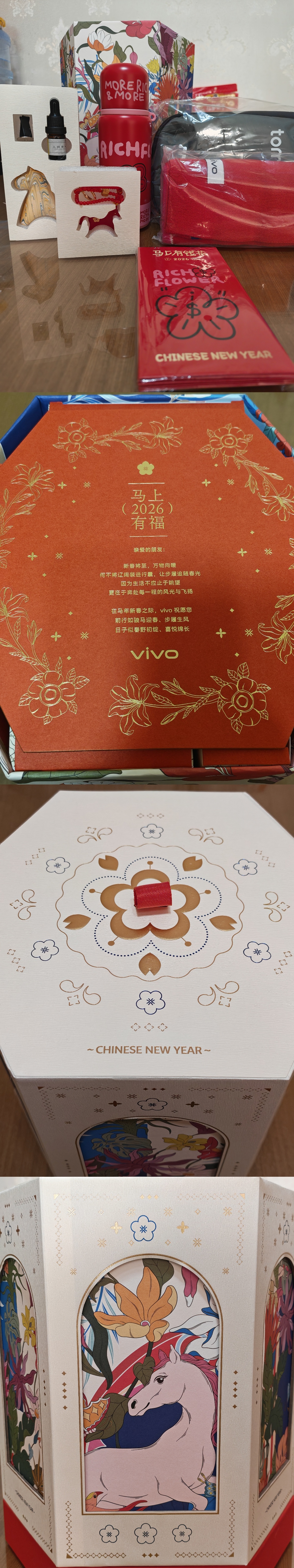 收到了华为、荣耀、vivo、OPPO、拼多多、小鹏、上汽五菱(寄到我的江西老家了,只能让我老妈随手拍两张了)、数客文化的新年礼盒,还有Anker说寄慢了得年后再寄了。子弹兄在这里一一表示感谢了,非常感恩(照片都是我老婆拍摄的哈)
