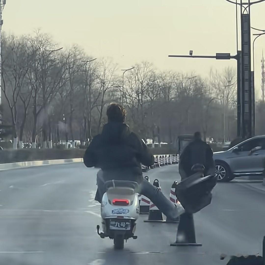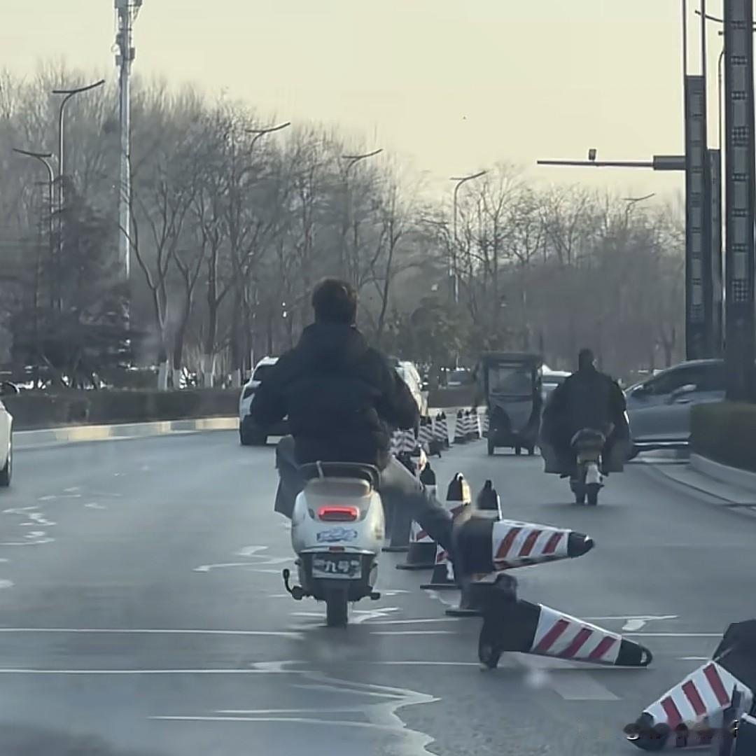 有时候真的很难理解这种人,道路中间的隔离墩放的好好的,自己骑个电动车,硬是把一路