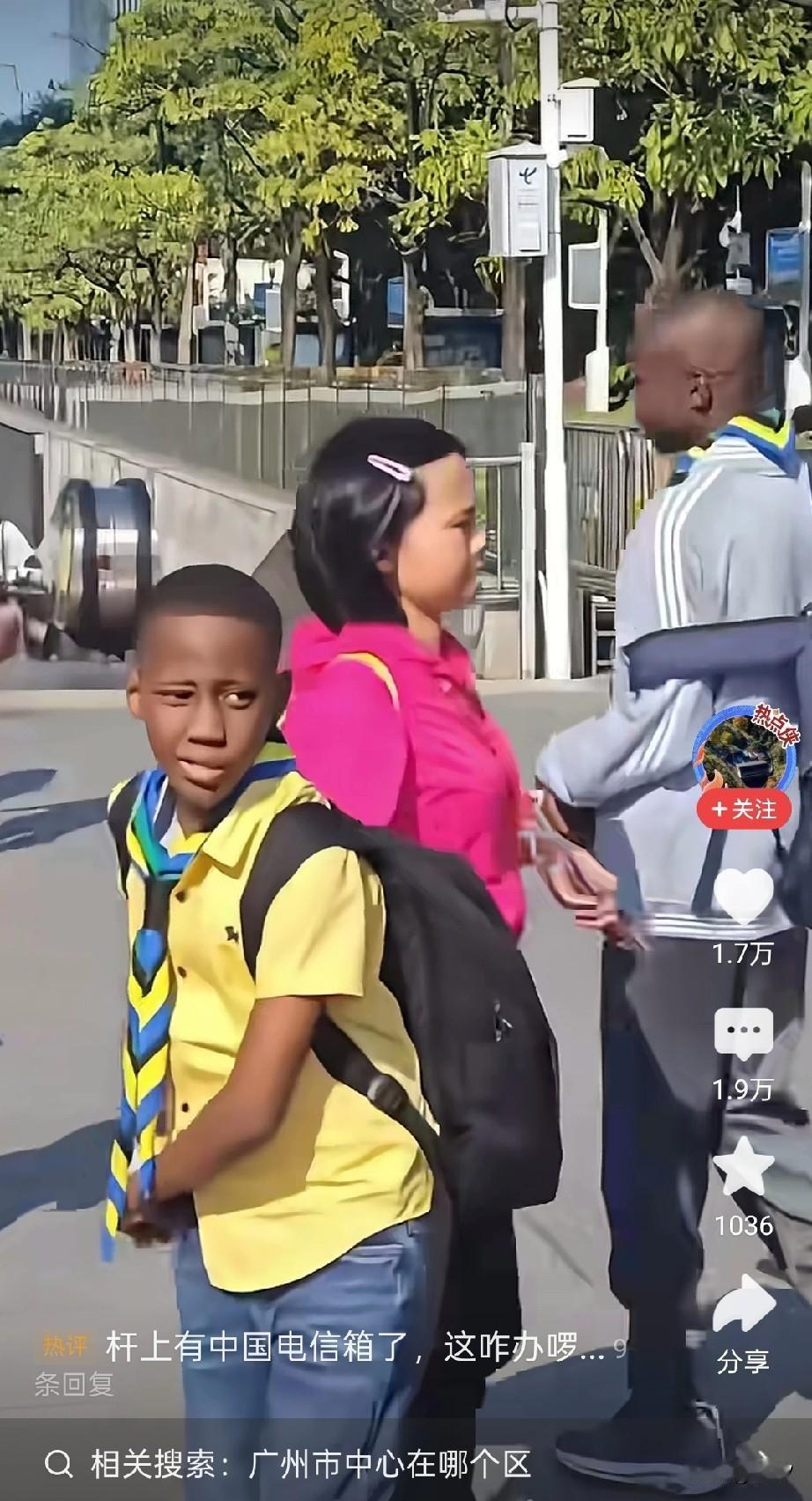万万想不到广州越秀区居然这么多老外,他们的父辈出去做生意或者是留学生, 纷纷在广州定居了,于是他们的出生地就在广州,广州话说的比当地人都好,但是却长着一副老外的面孔! 要不是看到附近有中国女孩走过,以及电线杆上的某信标识,真的就觉得这就是在非洲了! 这些二代们在广州上学,接受中式教育,相比以后也会在中国定居,怪不得人人都说广州老外多! 还真不是一般的多,要不然也不会出现这么多老外的孩子上学出现在广场的情况,大家觉得广州越秀区为什么这么多小老外? 广州非洲区 广州非洲移民 广州孩子 外国人广州旅游