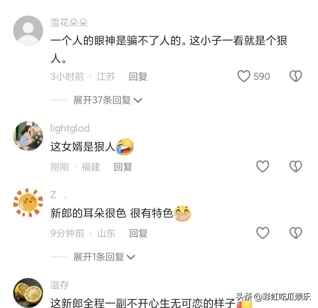 大衣哥朱之文的女婿一看就不简单,一个人的眼神骗不了人,这小子一看就是狠人。 相由心生,结婚是人生大事,他居然在人生最重要的时刻愁容满面,眼神没有一丝笑容,甚至对雪梅有点不耐烦。 古有皇帝女儿不愁嫁,今有有钱人的女儿不愁嫁,如果朱之文没有钱,也许女婿不会看上朱雪梅。 眼睛是心灵的窗户,什么都能骗人,唯独眼神骗不了人,大家都不看好他,不知道未来会不会反转。