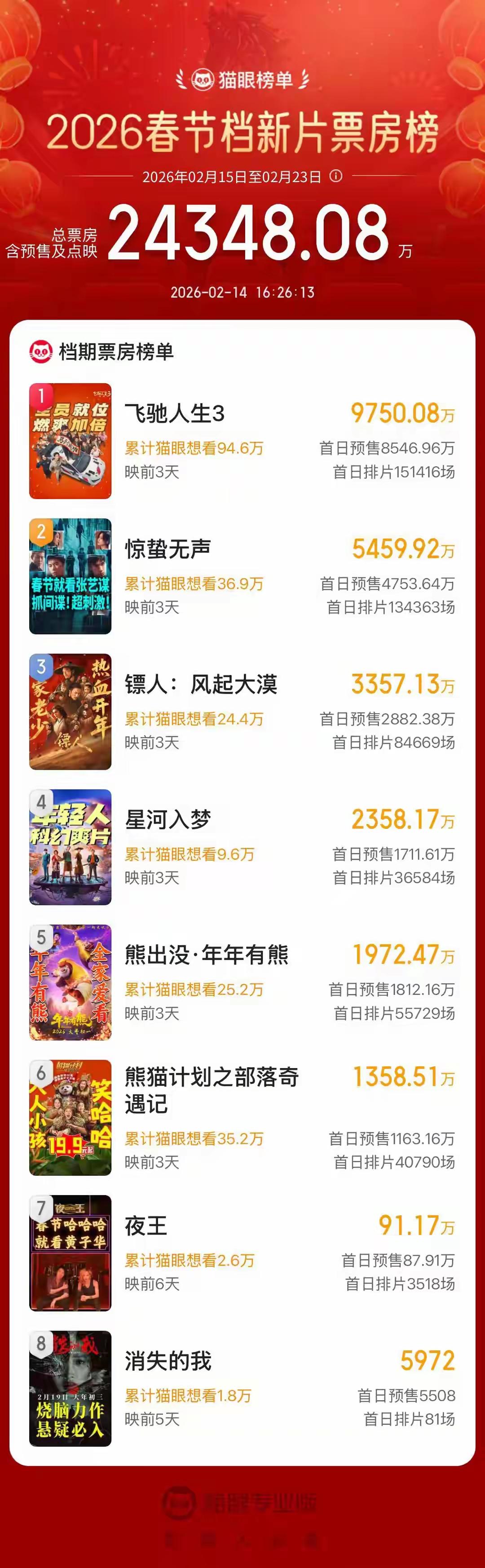 [吃瓜群众]春节档的电影“预售”如火如荼,但…个人有种奇怪的“预感”——这个春节的电影市场,不会要“崩”吧?[石化] [思考]简而言之,电影指望“配角”来“扛剧”,完全不现实[灵光一闪]