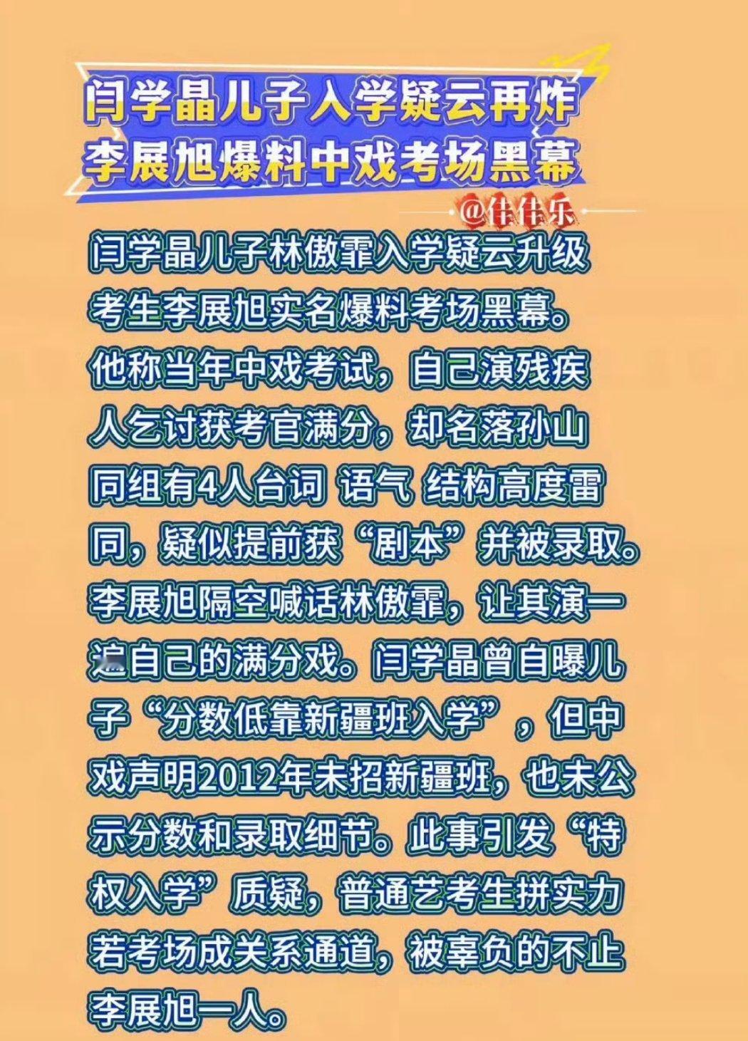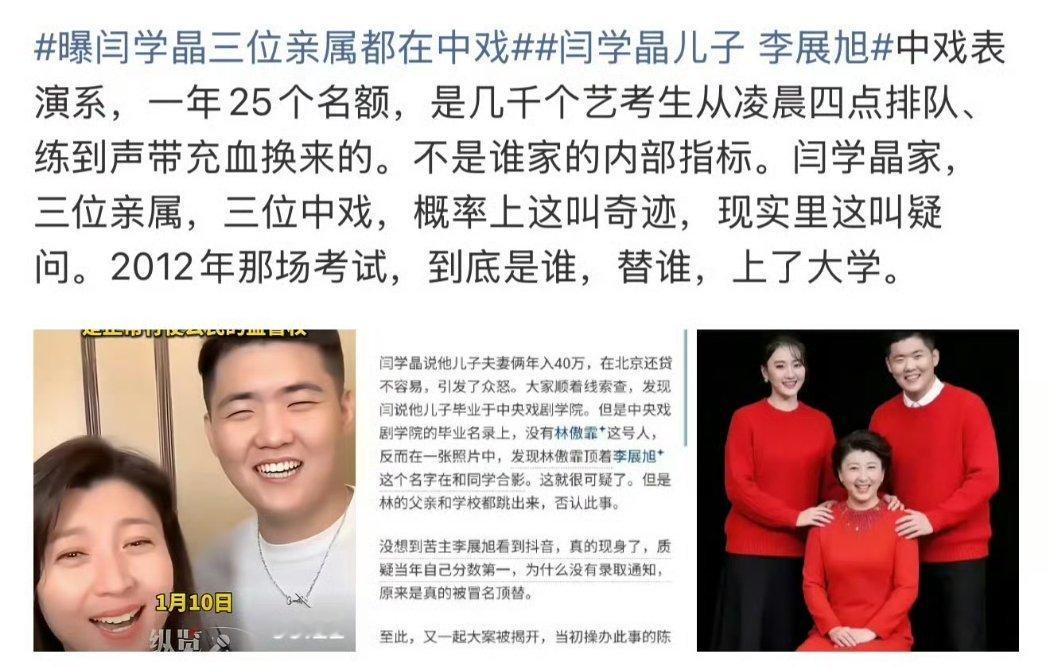 曝黄子弘凡爸爸诈骗学生 活该那几个电影/戏剧学院拍不出好作品培养不了好演员,艺考这种完全主观评价机制全是恶臭的窟窿,圈子抱团搞鄙视链瞧不起选秀和网剧演员,谁比谁高贵?曝闫学晶三位亲属都在中戏中戏表演系连续三任系主任主动投案