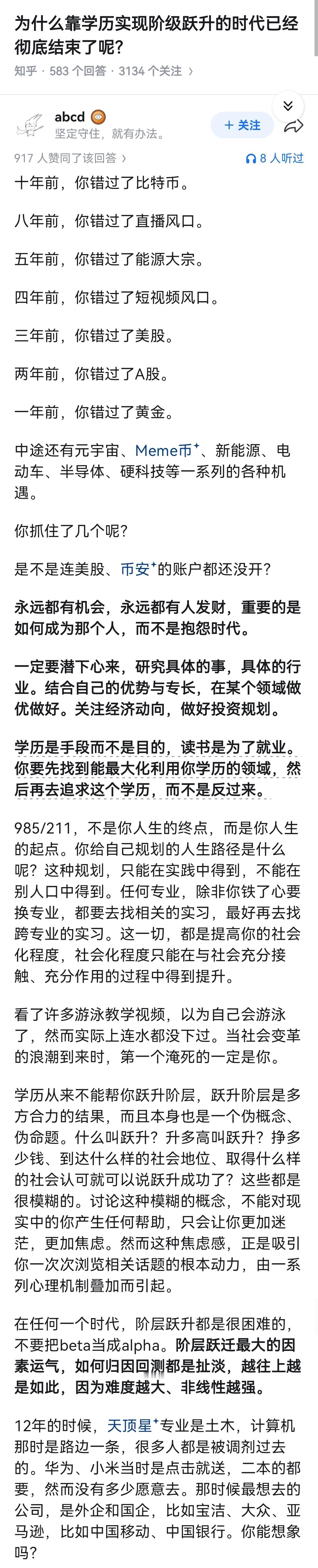 为什么靠学历实现阶级跃升的时代已经彻底结束了呢?