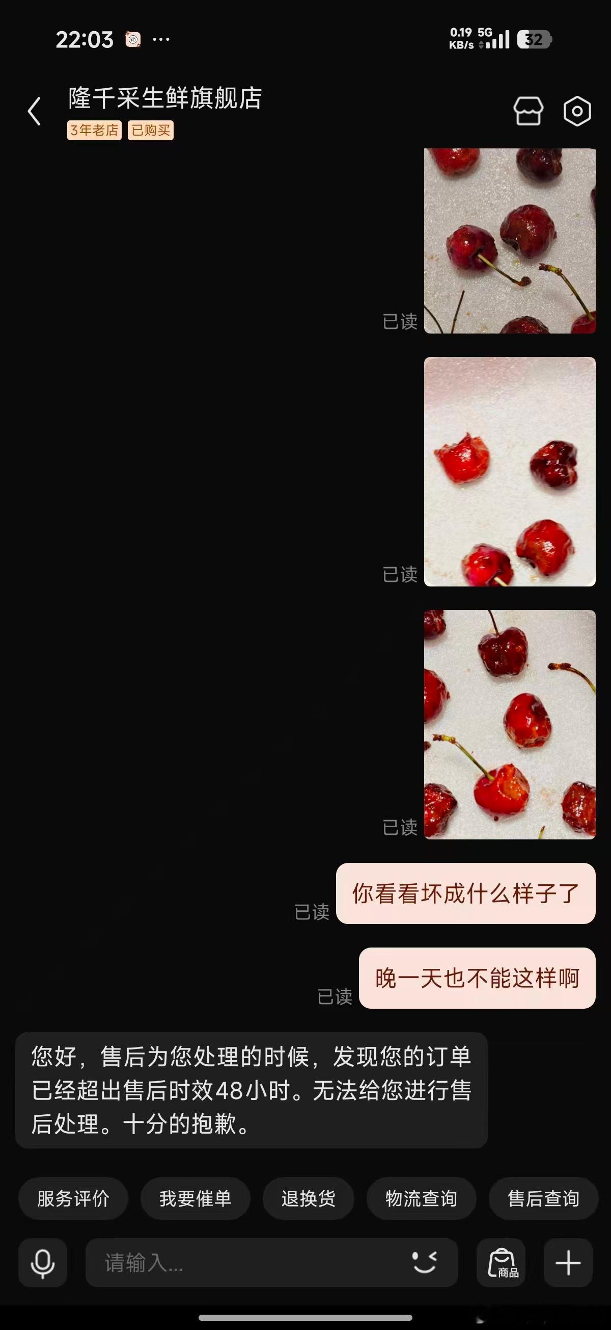 完全不处理质量问题,理由是超过48小时了