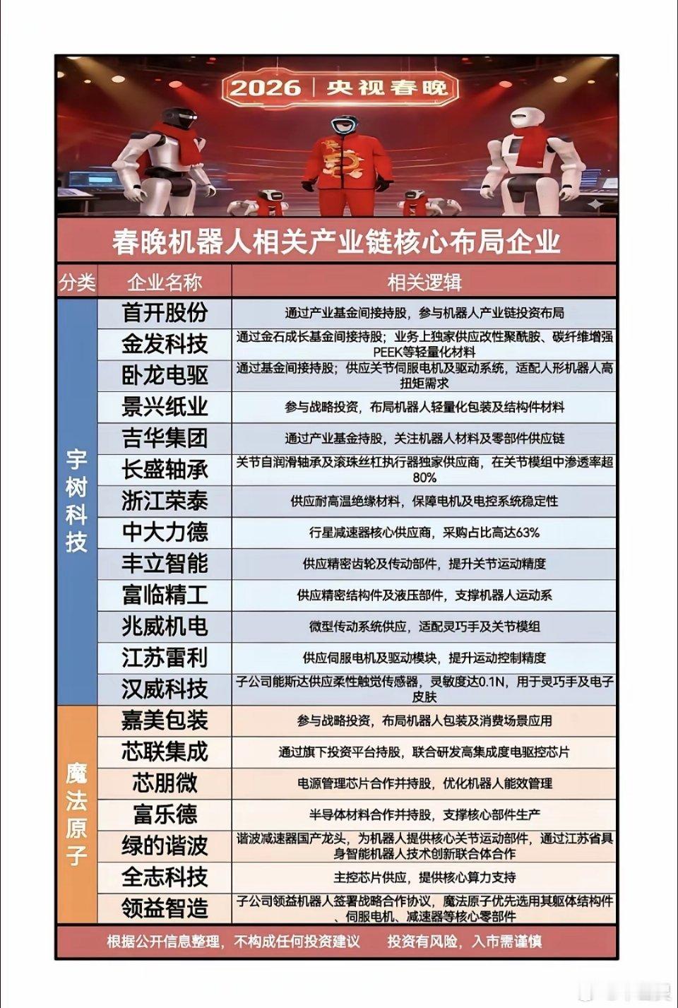 2.14周六 春晚机器人:核心布局企业!春晚机器人合作:1.宇树机器人2.魔法原子3.银河通用4.松延动力相关核心龙头股: