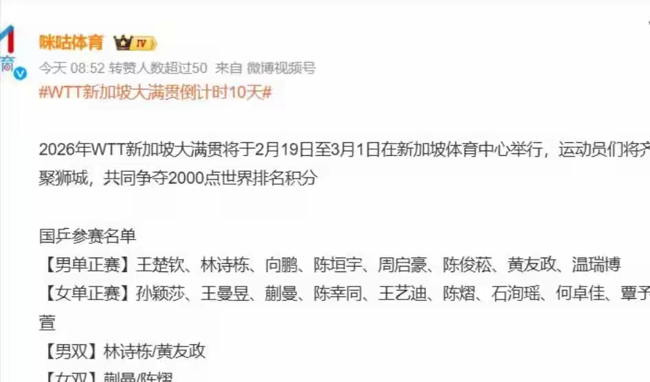 肖战出手了!世界第1组合被拆开,21岁小将被重用:大满贯身兼3项2月9日,海口亚洲杯圆满落幕,赛场内掌声雷动,女乒队员们携手站上领奖台,金银铜奖牌尽数收入囊中,脸上洋溢着从容自信的笑容;男乒赛场则略显波折,王楚钦孤军奋战,一路过关斩将闯入决赛,最终成功夺冠,奋力捍卫了男乒的荣誉。尽管整体成绩尚可,但国乒教练组并未有丝毫懈怠,赛事结束后便立刻投入到WTT新加坡大满贯的备战工作中。恰逢新年期间,国乒派出全部主力阵容,势要全力冲击该赛事的五枚金牌,力争为新年赢得好彩头。让人意外的是,国乒在备战名单中做出了重大调整——目前排名世界第一的混双组合被拆开,反倒是两位年轻小将得到重用。乒协主席王励勤、国乒总教练秦志戬与副总教练肖战联手做出的这一安排,引发了外界诸多猜测,众人纷纷好奇,教练组此举背后的深意,以及为提升国乒竞争力,还将有哪些后续调整。WTT新加坡大满贯赛事定于2月19日至3月1日举行,作为重要的国际赛事,国乒对此高度重视,直接派出全主力出战,从参赛名单来看,大有包揽所有项目金牌的决心。男单赛场,王楚钦、林诗栋、向鹏、陈垣宇、周启豪等主力选手悉数在列;女单赛场则集结了孙颖莎、王曼昱、蒯曼、陈幸同、王艺迪、陈熠等顶尖选手,阵容堪称豪华,竞争力十足。网友们一边期盼国乒能在此次赛事中包揽全部金牌,一边也生出不少担忧。这份担忧,源于不久前结束的海口亚洲杯。此次亚洲杯上,女乒表现亮眼,孙颖莎、王曼昱、蒯曼分别斩获金银铜奖牌,包揽了该项目的全部荣誉;男乒则境遇不佳,尽管王楚钦最终夺冠,但四强席位中,仅有他一人闯入,其他选手状态普遍低迷。其中,林诗栋的表现尤为让人惋惜。八强赛中,他一度以3:1的大比分领先对手,占据绝对优势,可随后却被对手连续追回3个大分,最终遗憾落败,未能晋级半决赛;周启豪则因在八强赛中与队友王楚钦相遇,无奈止步八强,错失进一步晋级的机会;小将陈俊菘表现不佳,在小组赛阶段便惨遭淘汰,早早结束了此次亚洲杯之旅。现阶段来看,男乒队伍中,能够真正扛起大旗、稳定发挥的,似乎只有王楚钦一人。与此同时,男乒整体状态下滑的情况下,外协选手的实力却在不断提升,巴西的雨果、日本的张本智和、瑞典的莫雷加德等选手,近年来进步迅猛,已经具备了与国乒选手扳手腕的实力。巴黎奥运会期间,莫雷加德曾意外淘汰夺冠大热门王楚钦;2025年澳门世界杯上,雨果以4:0的比分击败林诗栋,成功斩获冠军;张本智和则始终稳居日本队顶尖行列,实力不容小觑。面对这样的局势,国乒教练组早已有所察觉,并且开始针对性地做出调整,其中最引人关注的,便是新加坡大满贯的出战阵容调整。WTT新加坡大满贯共设有男单、女单、男双、女双、混双五个项目,国乒在双打项目上的阵容安排,与以往有很大不同。男双派出林诗栋/黄友政组合,女双由蒯曼/陈熠携手出战,混双则安排黄友政/陈熠搭档。男女双打阵容的安排,并未引发太多争议,反倒是混双阵容的调整,掀起了不小的讨论热潮。要知道,国乒在混双项目上,原本拥有王楚钦/孙颖莎、林诗栋/蒯曼两组实力强劲的搭档,其中林诗栋与蒯曼的组合,在2025年年底以7273的积分登顶世界第一,是夺冠的热门人选。不少网友疑惑,为何教练组不派出这对实力顶尖的组合,反而选择启用年轻小将,错失争冠的大好机会。国乒此次调整,有着明确的用意。一方面是为了减少王楚钦和林诗栋的参赛压力,让两人能够全身心投入到单打比赛中,毕竟近期男单成绩不够稳固,作为队内核心,他们必须扛起重任,全力争取好成绩;另一方面,也是为了重点培养新人,为2028年洛杉矶奥运会周期储备力量。现阶段国乒队伍已呈现出青黄不接的态势,若不及时挖掘和培养有潜力的小将,未来面临的竞争压力将会更大。此次得到重用的小将中,21岁的陈熠与黄友政尤为突出,两人不仅携手出战混双比赛,还同时身兼单打和双打项目,肩负着多重使命。除了这两位小将,温瑞博和覃予萱也得到了提拔,成功入选新加坡大满贯的单打名单,获得了宝贵的国际赛事历练机会。这些调整,足以看出教练组培养新人的决心和力度。此次阵容调整,由王励勤、秦志戬、肖战三人共同敲定。作为乒协主席,王励勤肩负着统筹全局的重任;秦志戬与肖战作为总教练和副总教练,则专注于队伍的训练和阵容打磨。三人身上背负的压力,甚至比运动员更大,他们的每一个决定,都关乎着国乒的未来发展。除了阵容调整,国乒还做出了另一项重要决定——全员放弃参加2月10日拉开帷幕的印度金奈WTT球星挑战赛。这一决定,让不少网友感到意外,毕竟以往国乒选手几乎全年无休,包揽了各类赛事,此次全员缺席,实属罕见。但这并非仓促之举,而是教练组深思熟虑后的结果。早在去年WTT香港总决赛上,王楚钦和孙颖莎两位主力选手,便因伤病被迫退出比赛,这也让国乒运动员的身体健康问题,受到了广泛关注。长期以来,国乒选手的赛程极为密集,常年辗转于各个赛场,舟车劳顿之下,几乎没有充足的时间休息调整。人非机器,长期连轴转,难免会影响身体健康和竞技状态,多家官媒也曾发声,呼吁尊重客观规律,保障运动员的休息时间。正是意识到了这一问题的严重性,国乒教练组才决定,在海口亚洲杯结束后,让运动员们适当休息,放弃印度金奈的WTT球星挑战赛。恰逢新年临近,让运动