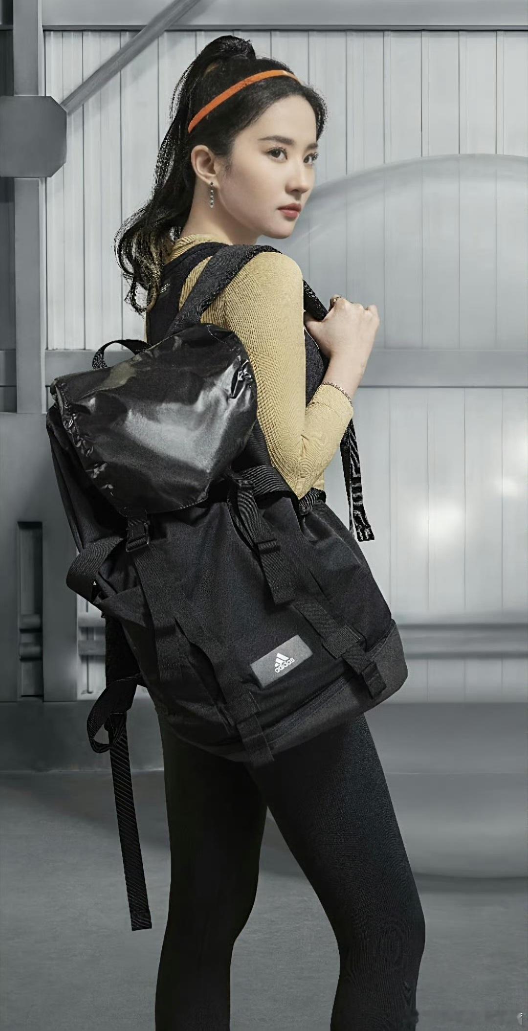 刘亦菲这次穿搭真是绝了,浅金色长袖打底衫,外搭黑色运动bra,黑金撞色高级又充满力量。下装是黑色高腰紧身leggings,银色金属腰边点睛之笔,瞬间提升未来感。配饰上,亮橙色发带与中筒袜色彩呼应,打破黑金色系的沉稳,注入活力。再搭配黑色双肩包,强化运动机能风。