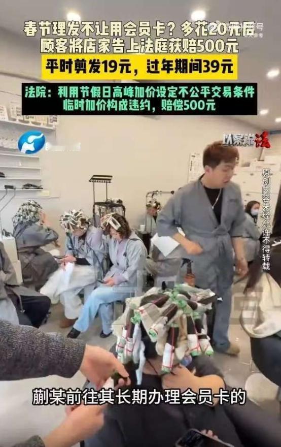 “玩不起!”山东菏泽,一男子在理发店办了张会员卡,每次理发19元,卡里还有400多余额,他春节前去理发,却被告知:春节期间会员卡不能用,必须付39元现金。男子有会员卡不让用,竟多花20元,他火冒三丈,直接把理发店告上法庭。法院判决出乎意料。 山东菏泽,男子是这家理发店的老顾客,平时理发一直认准这里,想着办张会员卡能便宜不少,还方便省事,于是就办理了一张预付会员卡,每次消费直接刷会员卡抵扣,会员价19元一次,比非会员价便宜不少,男子也一直觉得很划算,平时理发从没有过异议。 办卡之后,男子经常来这里理发,卡里的余额也一直很充足,截止到春节前,卡里还剩下400多块钱,按照19元一次的会员价,还能再理20多次,完全够用。 眼看春节就要到了,家家户户都想着理个新发型,干干净净过年,男子也不例外,特意抽时间来到这家熟悉的理发店,准备理个发,舒舒服服迎接新年。 可他万万没想到,刚理完发准备刷会员卡结账时,店员却突然告知他,春节期间会员卡暂停使用,不能抵扣消费,想要结账,必须支付39元现金,而且明确表示,这是店里的临时规定,所有会员都一样,没有例外。 男子当场就懵了,他办卡的时候,店员只说过会员价19元一次,从未提及过春节期间会员卡不能使用,也没有任何书面提示或者口头告知,而且他来理发之前,也没有看到店里张贴任何相关的通知,怎么突然就多出来这么一条规定。 更让他生气的是,有会员卡不让用,还要按非会员价39元付费,一下子多花20元,这不明摆着坐地起价、套路消费者吗? 男子强压着怒火,向店员询问原因,可店员只是反复强调,这是店里的规定,春节期间都是这样,要么按39元现金结账,要么就下次再来理发,没有任何商量的余地。 看着店员态度强硬,丝毫没有变通的意思,男子的怒火瞬间被点燃,越想越生气,觉得自己被理发店套路了。 他认为,自己办了会员卡,就和理发店形成了约定,店里理应按照约定提供19元一次的会员服务,没有提前告知,就单方面临时取消会员卡使用权限,还擅自提高理发价格,这明显是不合理的,也是不诚信的行为。 可当时他已经理完发,总不能不结账就走,无奈之下,男子只能不情愿地支付了39元现金,心里却憋着一肚子火。 理完发回家后,男子越想越咽不下这口气,400多余额的会员卡不让用,平白无故多花20元,而且理发店这种临时变卦、坐地起价的做法,实在太过分,完全不把消费者放在眼里。 他没有选择忍气吞声,也没有再去找理发店协商扯皮,而是下定决心,用法律武器维护自己的合法权益,当天就整理好相关证据,一纸诉状把这家理发店告上了当地法院。 经过调查,最终,法院判决理发店退还男子多支付的20元差价,同时支付男子价款三倍的赔偿金500元,承担此次案件的全部诉讼费用, 并且要求理发店立即取消春节期间会员卡停用的临时规定,恢复男子会员卡的正常使用权限,向男子作出书面致歉。 春节期间,不少美业商家都会出现临时加价、会员卡停用的情况,很多消费者都会选择忍气吞声,觉得多一事不如少一事,可正是这种妥协,才让商家更加肆无忌惮。 而这名男子的做法,也给很多消费者提了个醒,遇到不合理的消费套路,不必妥协,保留好证据,用法律武器维护自己的合法权益,才是最正确的选择。 对此,你们有什么看法,欢迎评论留言~