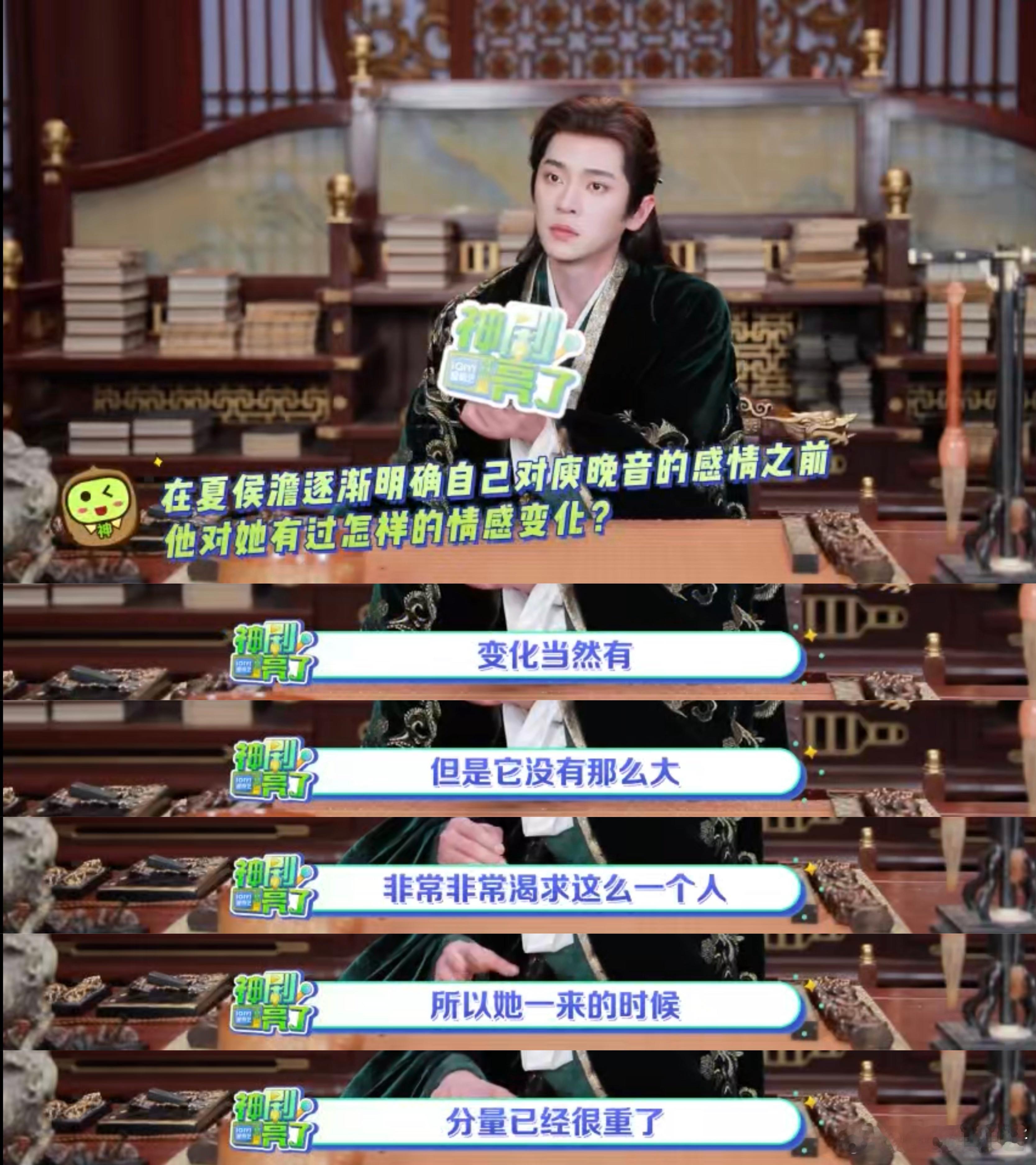丞磊夸王楚然这段我逐字学习 成何体统这糖也太顶了,直接吃国宴级别 夏侯澹对庾晚音的爱,真的太好嗑了满脑子都是他的深情夸奖💘