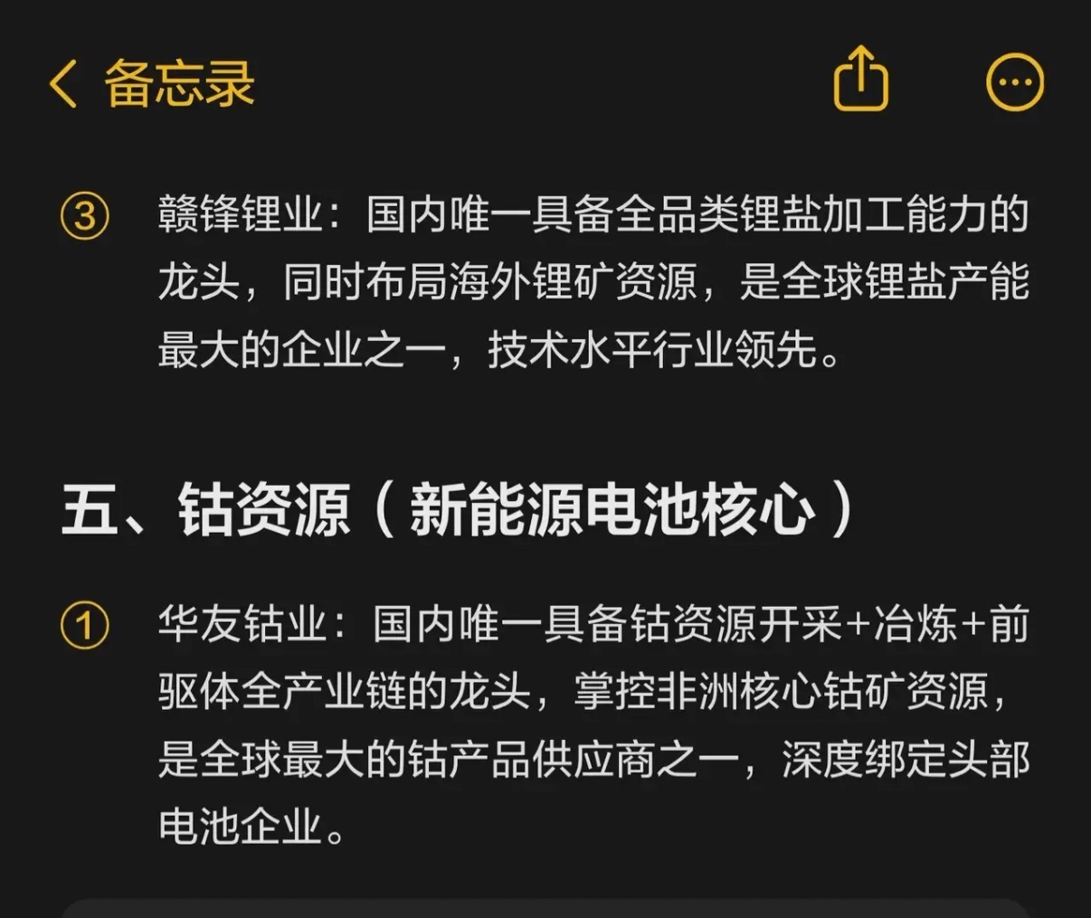 1. 华友钴业:国内唯一具备“钴资源开采+冶炼+前驱体”全产业链的龙头,掌控非洲核心钴矿,是全球最大钴产品供应商之一,绑定头部电池企业。2. 赣锋锂业:国内唯一具备全品类锂盐加工能力的龙头,布局海外锂矿,是全球锂盐产能最大企业之一,技术领先。