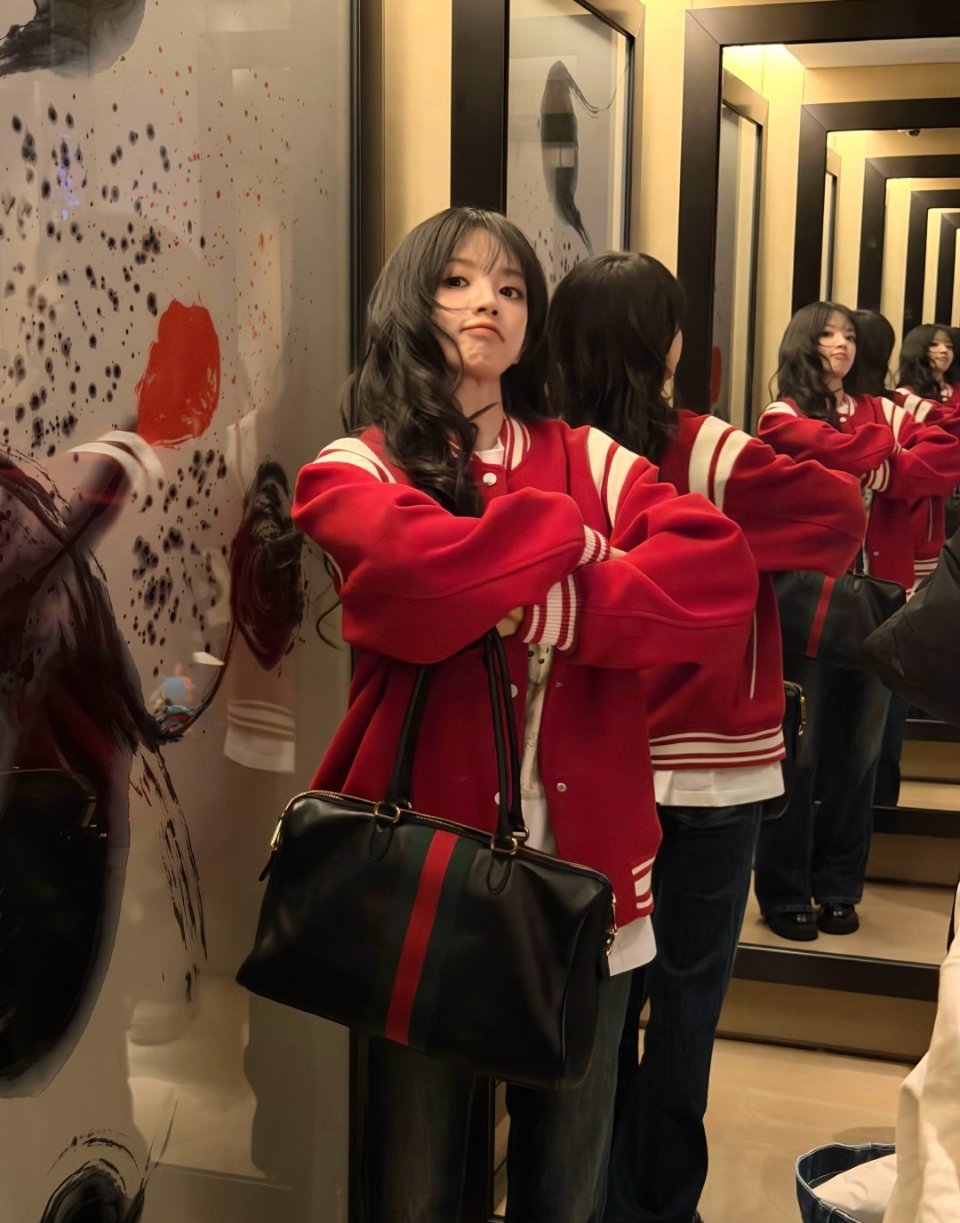 张天爱跟素人合影,胯真的好宽,大宅院似的
