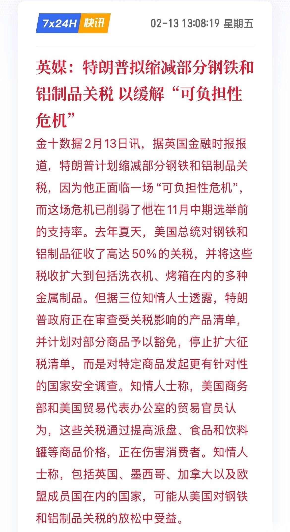他一句话,就一句话。 前脚刚把钢铝关税的墙砌得高高的,后脚自己抡起锤子就说要砸了,理由是帮大家缓解什么“可负担性危机”。 这话就像一颗石子,砸进了伦敦的交易池。 无数双眼睛死死盯着屏幕,那根代表铝价的线,前一秒还稳如老狗,下一秒就像被人从悬崖上踹了下去,笔直地、毫不犹豫地砸向谷底,屏幕上瞬间被拉出一条又长又狠的红线。 空气凝固了三秒。 然后,整个有色金属板块,铜、锌、镍……像被推倒的多米诺骨牌,哗啦啦全线溃败。交易大厅里,下单的键盘声听着都带了火气,电话铃声更是响得跟催命一样。 这哪是调控?这分明是把全球的盘子当成了他一个人的游乐场。 先亲手把价格吹上天,再一句话让它自由落体。这翻手为云覆手为雨的,最后到底是谁在买单?