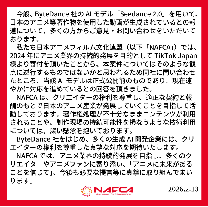 美国的SAG-AFTRA和日本NAFCA几乎在同一天,控诉seedance2.0。因为seedance2.0是颠覆性的。