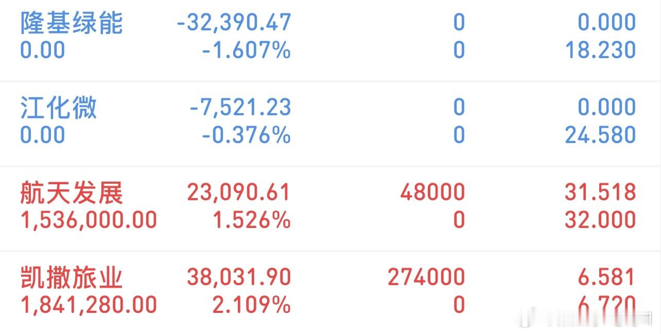 新进:航天发展新进:凯撒旅业清了:隆基绿能清了:江化微