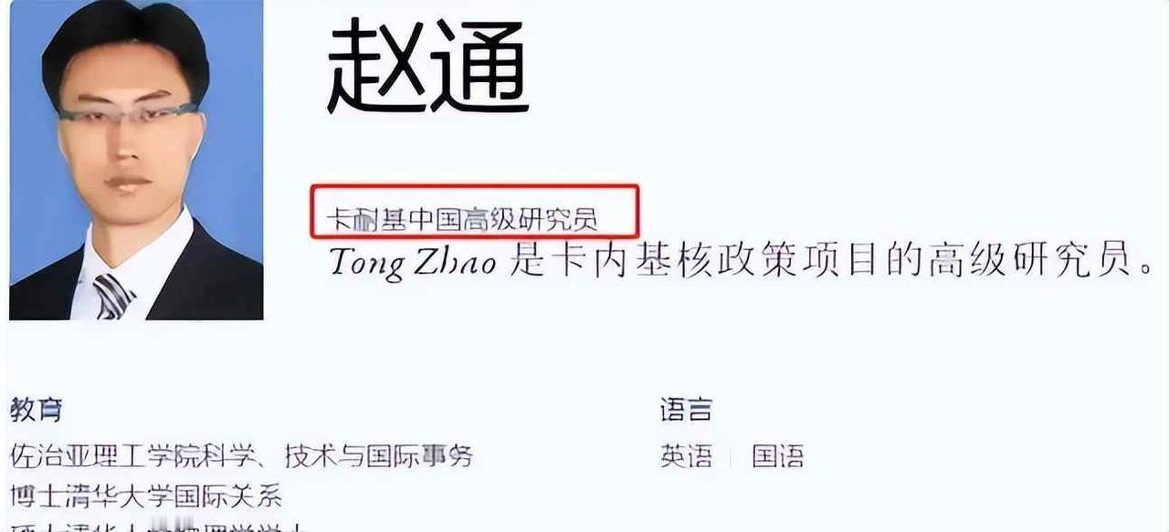 清华博士赴美当智库专家,帮美国设计对付台湾的策略,有人觉得他走错了路 赵通在清华大学读了物理本科,后来拿到国际关系硕士学位,又去美国佐治亚理工读博士,研究科技和国际事务的关系,他早年在北京市政府外事办工作过,算是从体制内成长起来的人,如今他在卡内基国际和平基金会担任高级研究员,同时还在普林斯顿大学和哈佛大学兼任研究职务,按理说这种经历的人应该更能理解中国的发展思路,但他最近几年公开提出的对台建议越来越偏向美方立场,这让国内不少人感到不解。 他提的几条建议,听起来挺专业,实际操作起来很方便,第一条是军事上不直接卖武器,而是通过情报共享、联合演习、AI目标识别这些方法,悄悄提升台湾军队的战斗力,这相当于让台军变成美军的影子部队,打起仗来能快速配合,表面上又不那么引人注意,第二条是拉拢美国日本澳大利亚印度这些国家,在联合国和世界卫生组织这类地方给台湾争取观察员身份,这不是真的让台湾加入,只是制造一种它能参与进来的假象,慢慢削弱一个中国原则的实际效果。 第三条是舆论战,他利用自己熟悉大陆政策这一点,专门挑防疫、教育、年轻人找工作这些民生话题来做文章,放大两岸之间的差异,再配合社交媒体的算法,把“抗中保台”的内容精准推送给特定的人群,这种打法成本不高,见效很快,容易让人产生情绪对立。第四条是经济绑定,比如推动台湾加入CPTPP,给台积电在美国建厂。