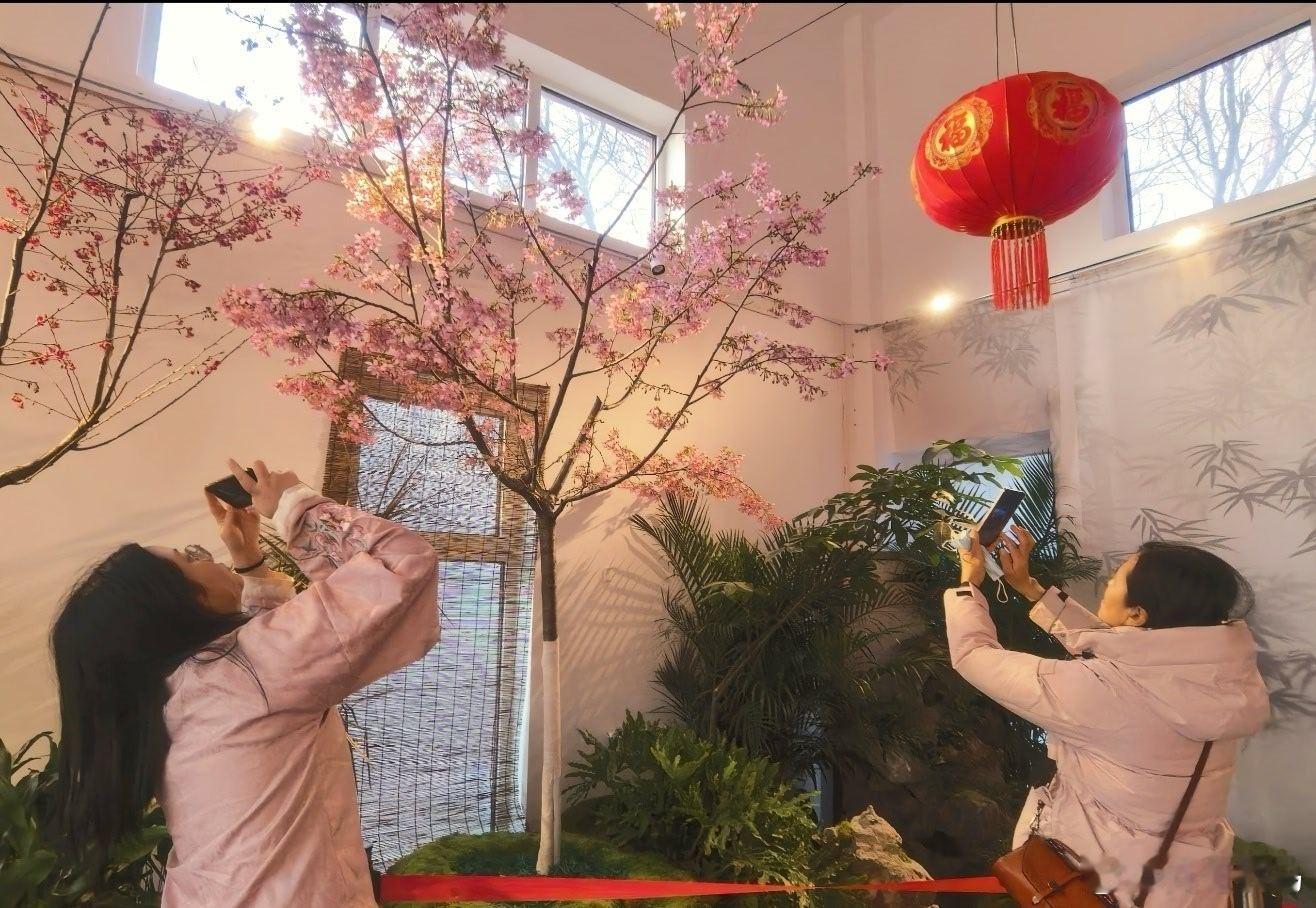 玉渊潭公园小樱驿站盛装开放,站内早樱、高山杜鹃、蝴蝶兰等盛放迎春,吸引众多游人驻足打卡摄影